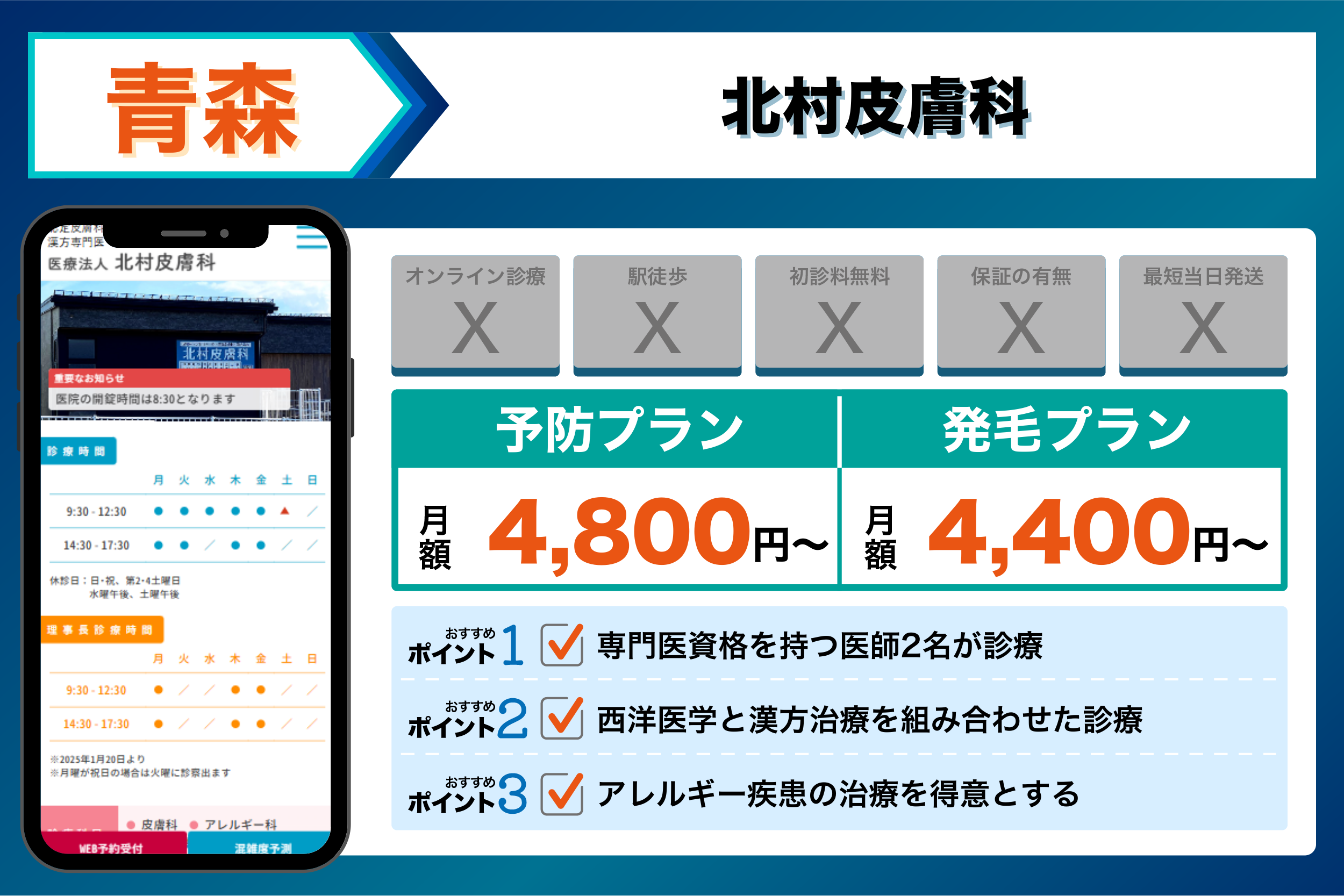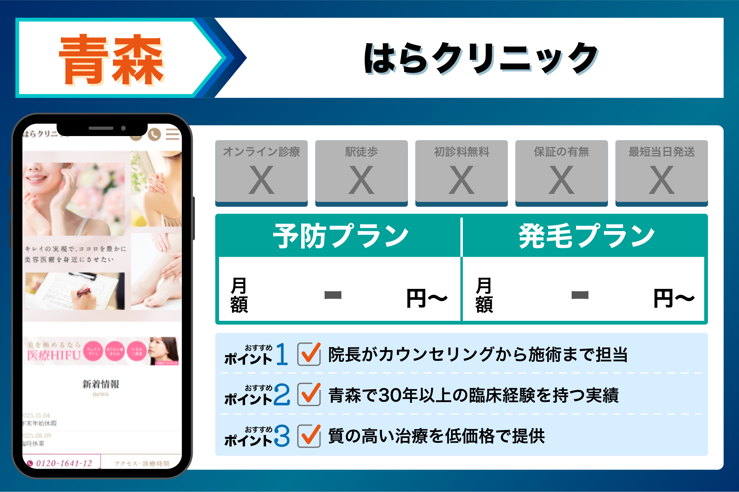 当編集部が青森の主要クリニックを調査した結果、重視するポイントごとに以下のような傾向が見られました。