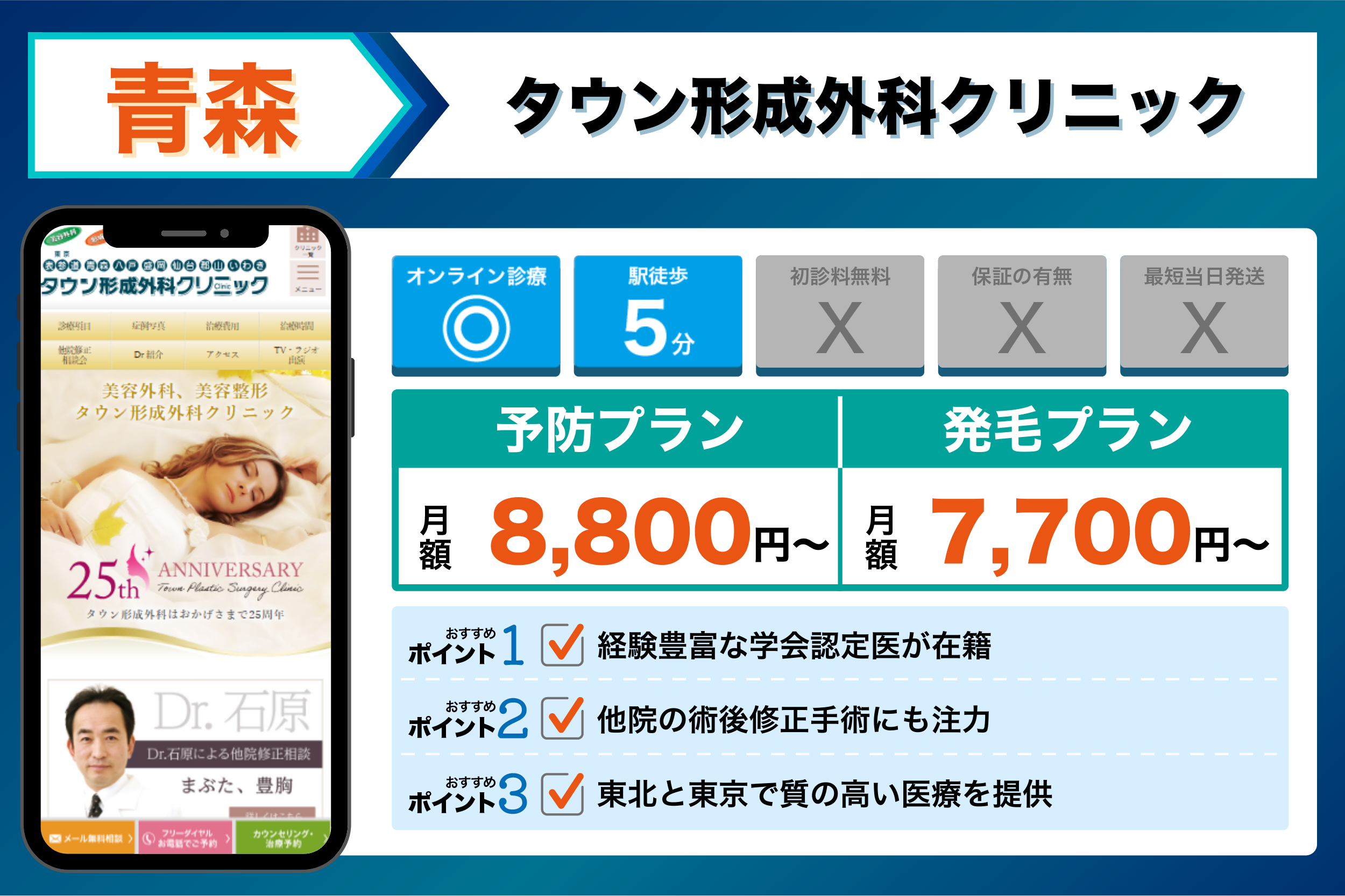 八戸タウン形成外科クリニック | 手術は経験豊富な学会認定医が担当 | 【発毛】:ミノキシジル7%:7,700円から| |