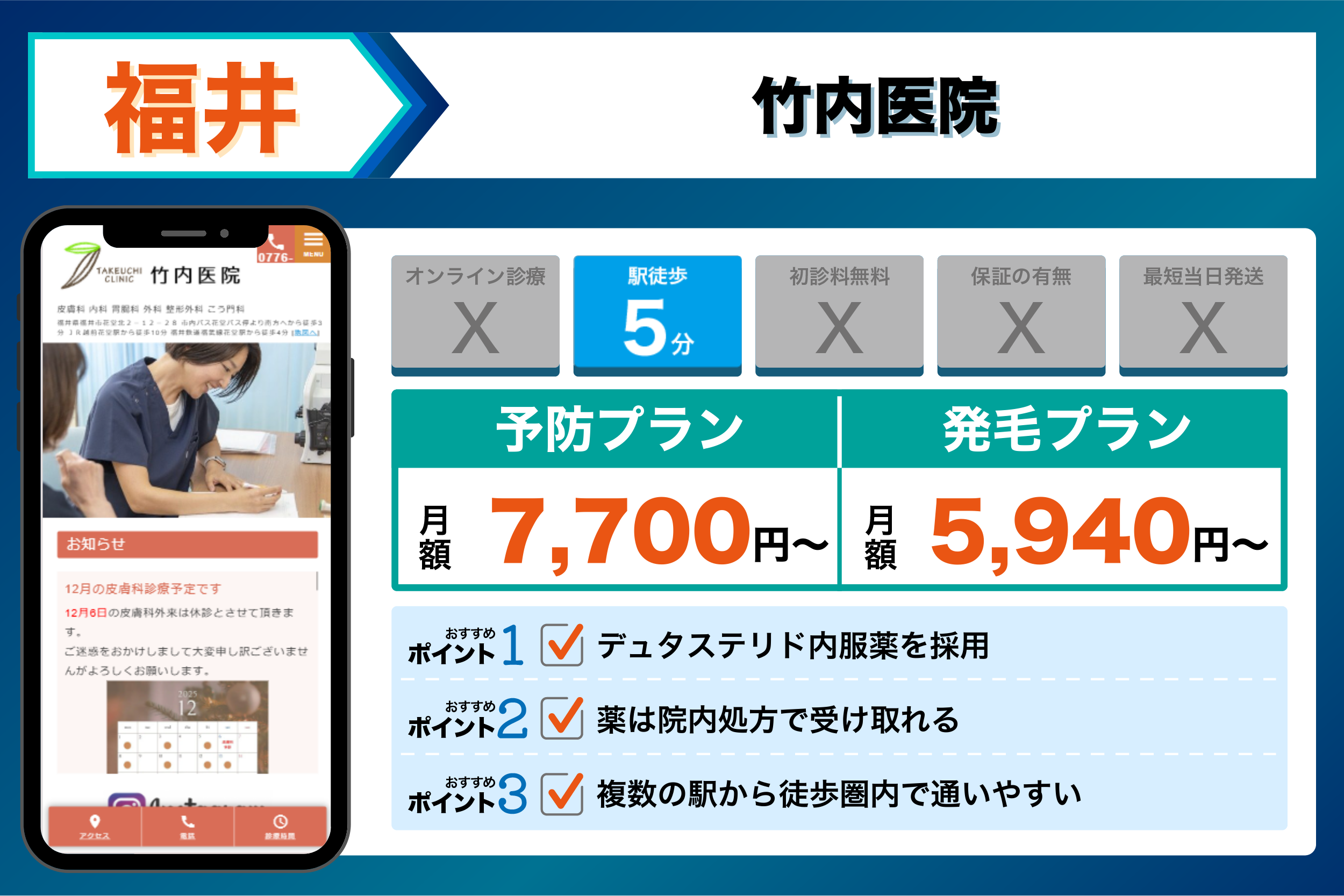 編集部が厳選した福井でおすすめのAGAクリニック5院の比較表