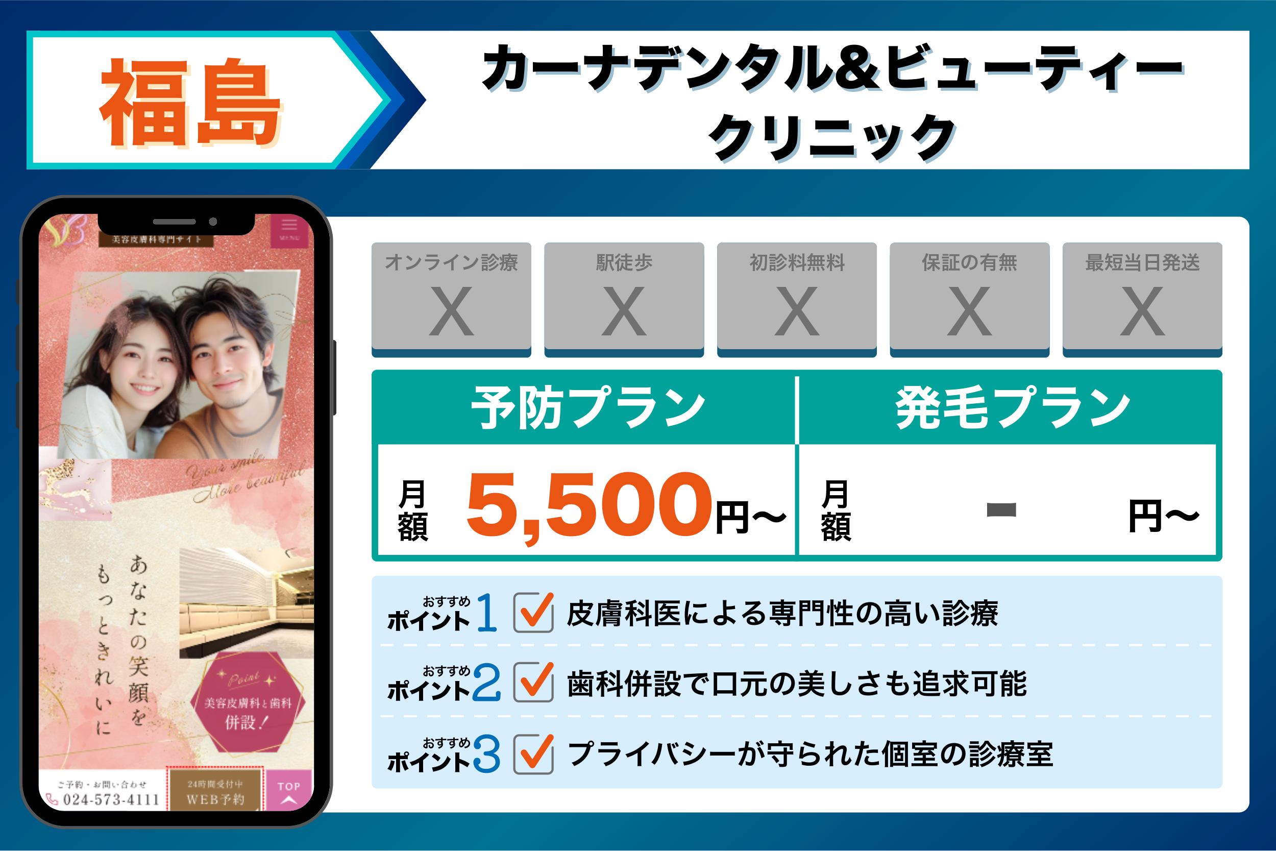 | カーナデンタル&ビューティークリニック | JR「福島駅」東口から徒歩約8分 |