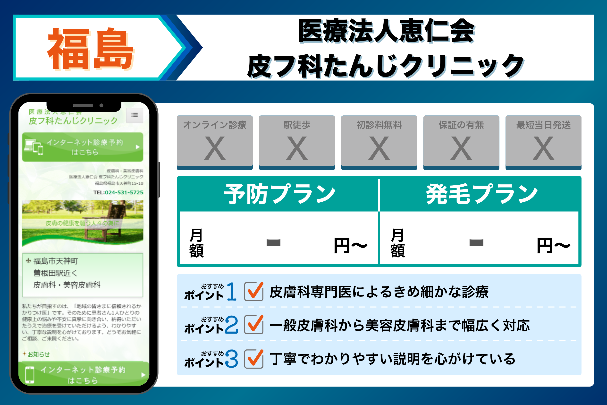 医療法人恵仁会 皮フ科たんじクリニック | 皮膚科専門医によるきめ細かな診療 | 公式サイトに記載なし |