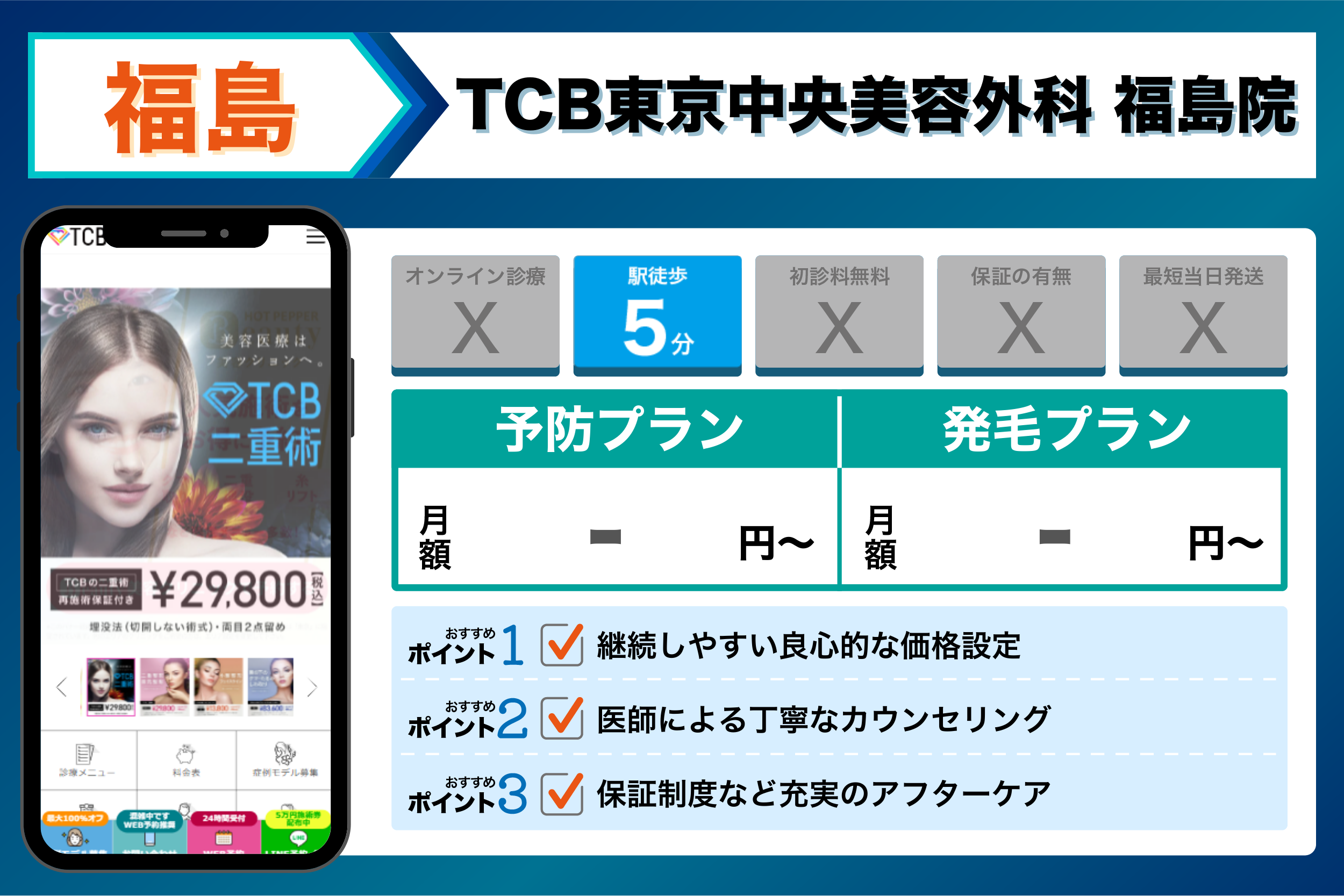 TCB東京中央美容外科 福島院 | 継続しやすい良心的な価格設定 | 公式サイトに記載なし |