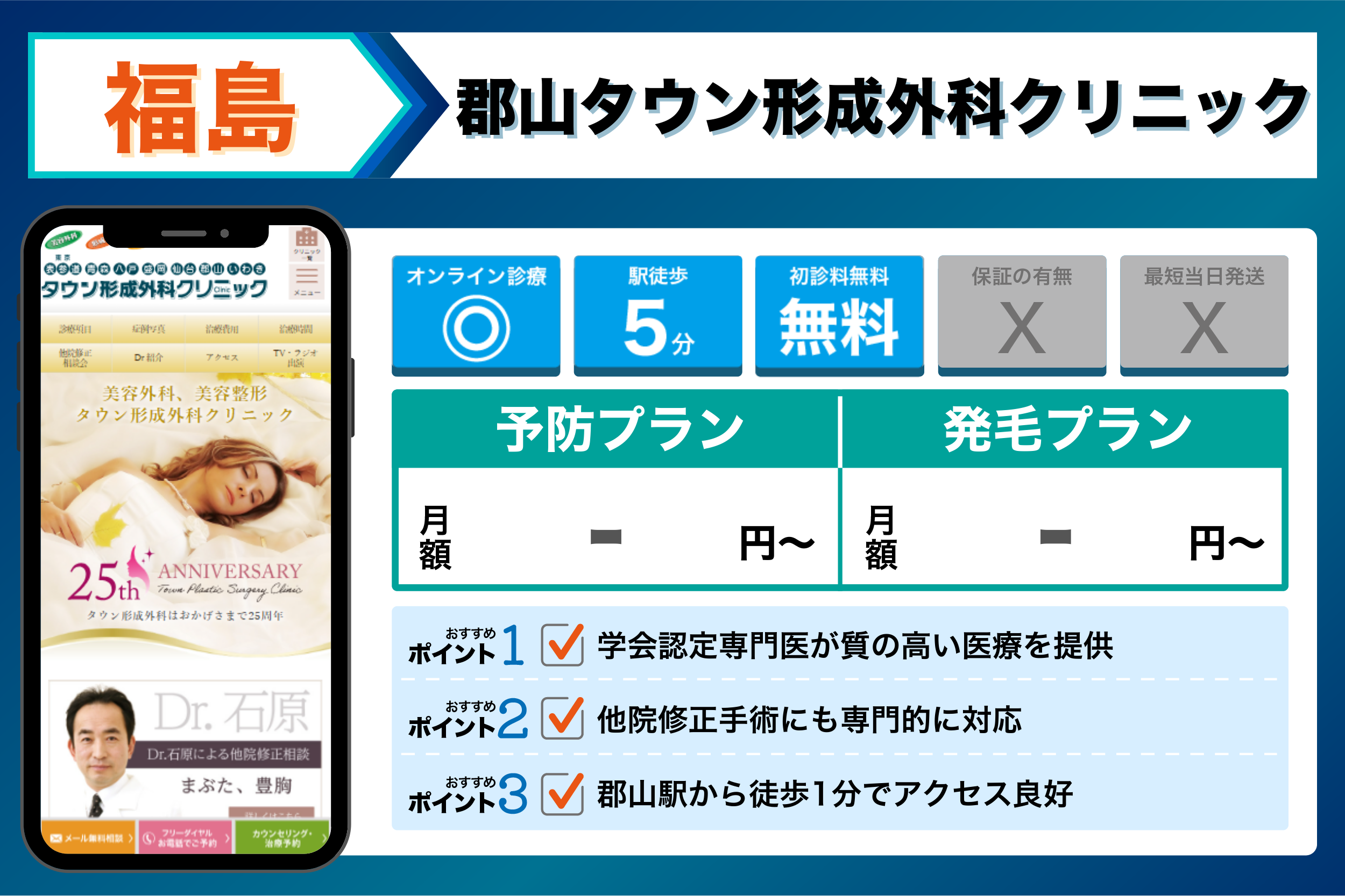 郡山タウン形成外科クリニック | 学会認定専門医が質の高い医療を提供 | 公式サイトに記載なし |