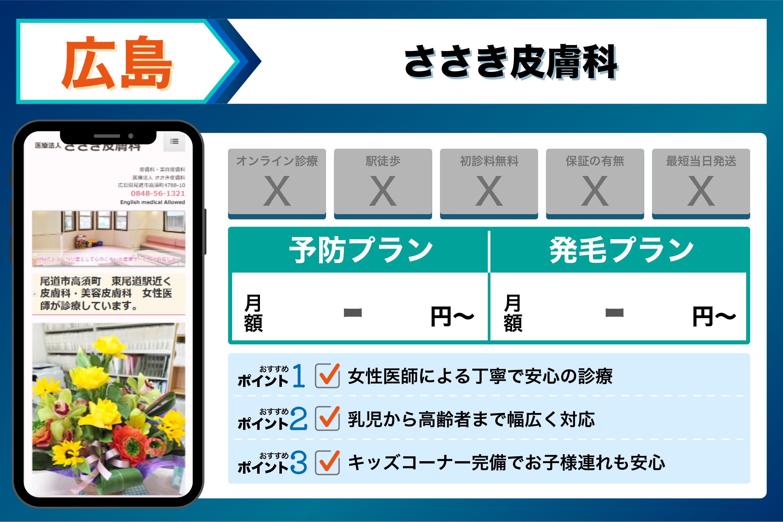 ささき皮膚科(尾道市) | 女性医師による丁寧で安心の診療 | 公式サイトに記載なし |