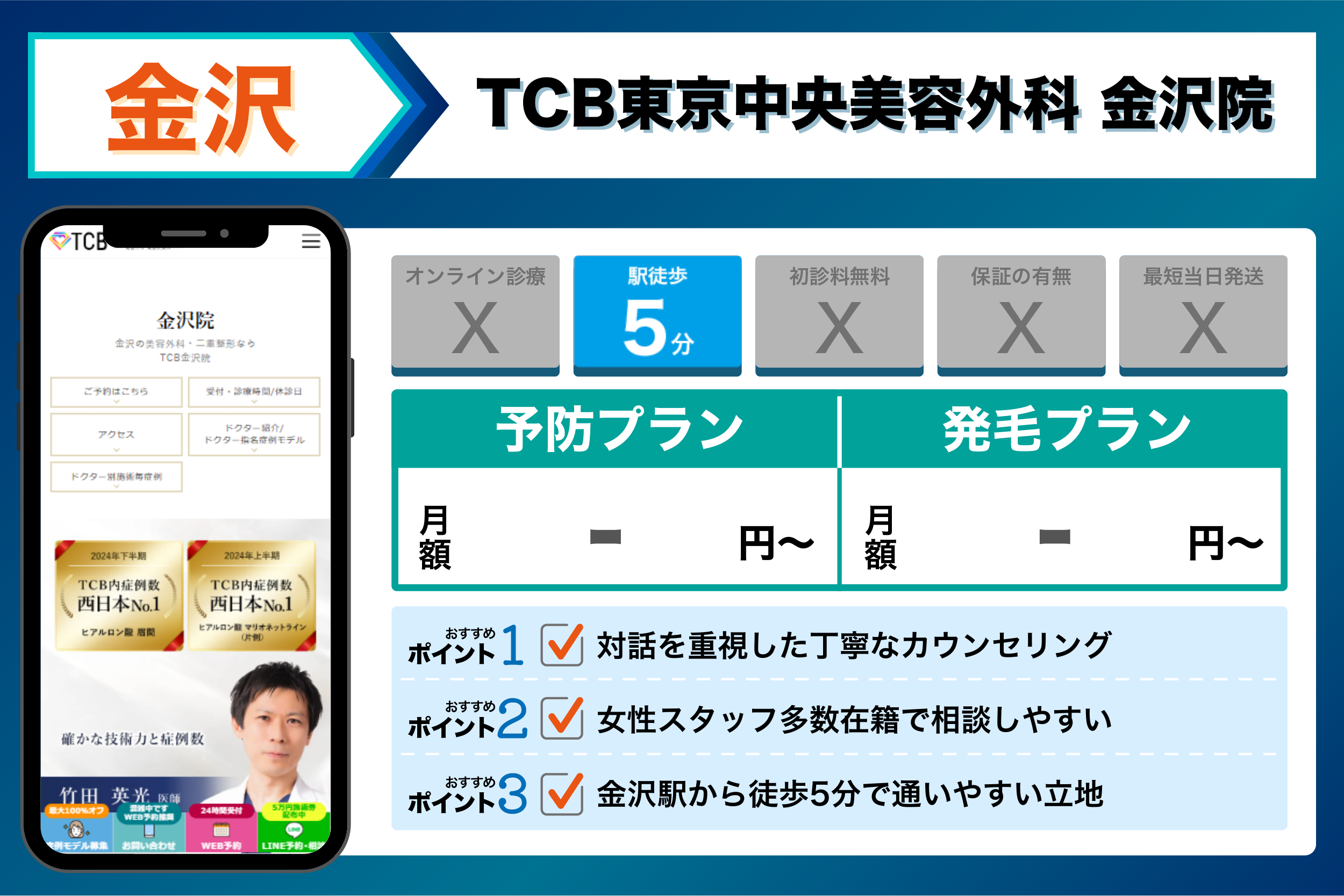 TCB東京中央美容外科 金沢院 | 対話を重視した丁寧なカウンセリング | 公式サイトに記載なし |