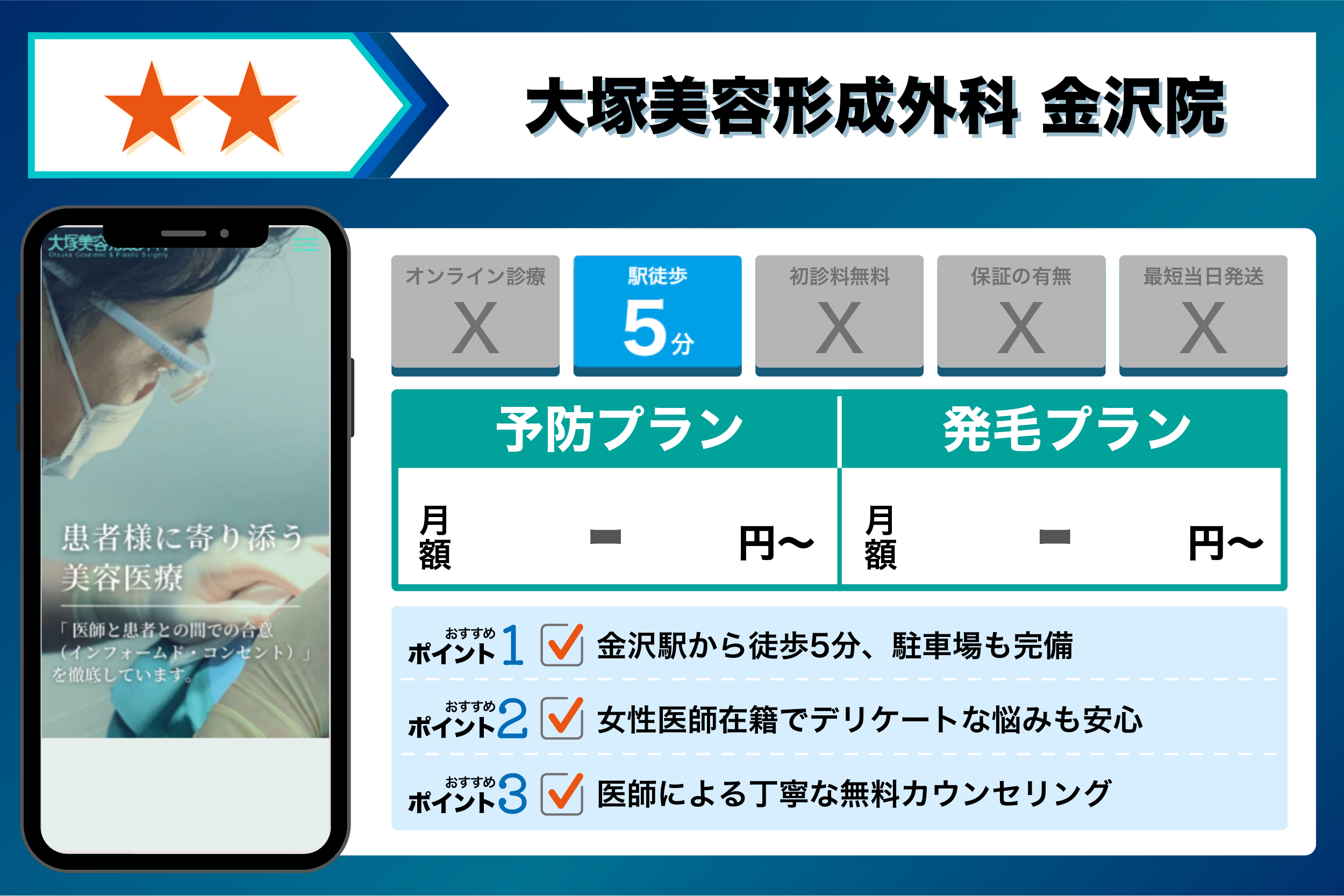 大塚美容形成外科 金沢院 | 医師による丁寧な無料カウンセリング | 公式サイトに記載なし |