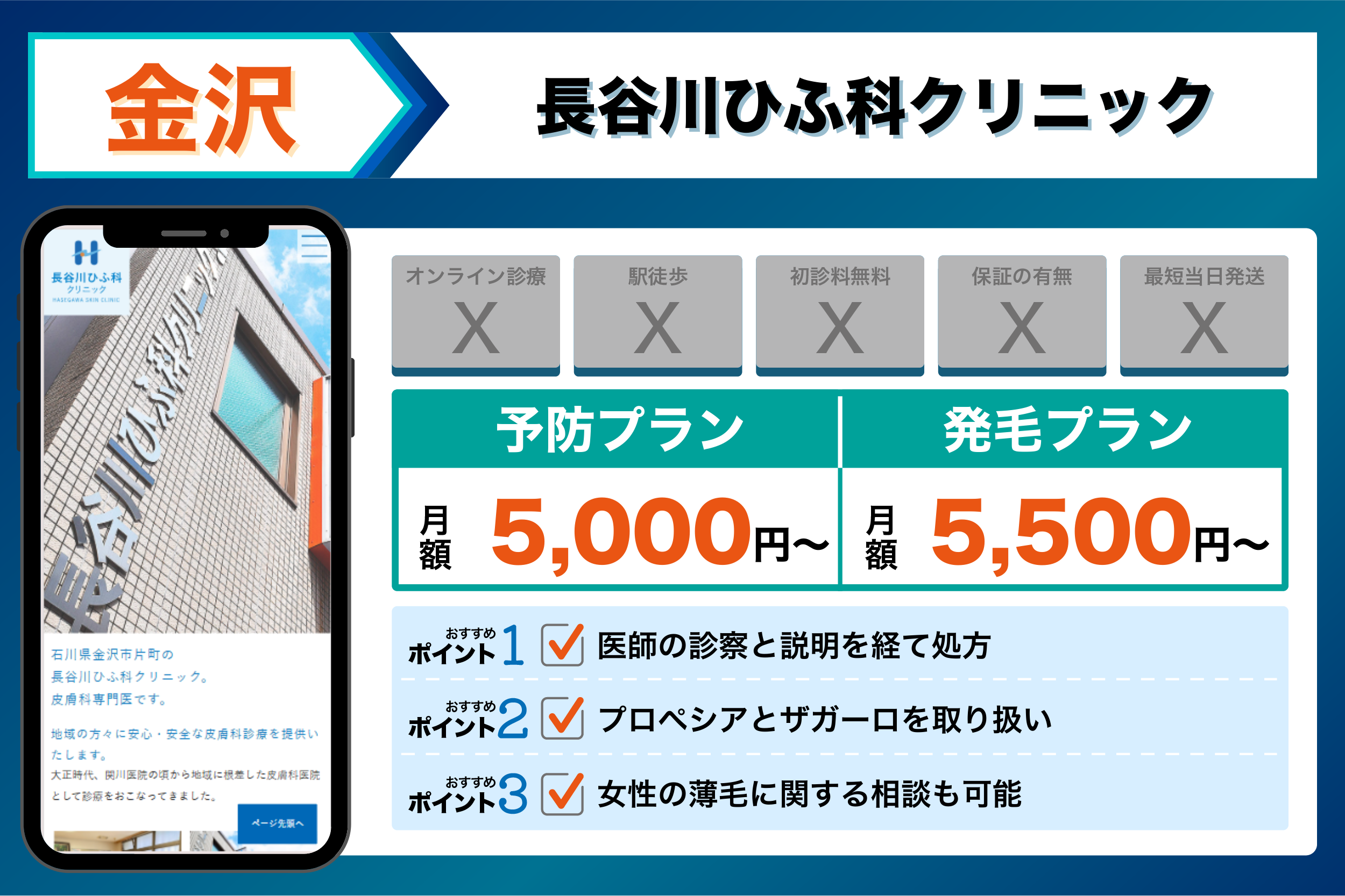金沢主要部から通やすいAGA治療おすすめクリニックを紹介