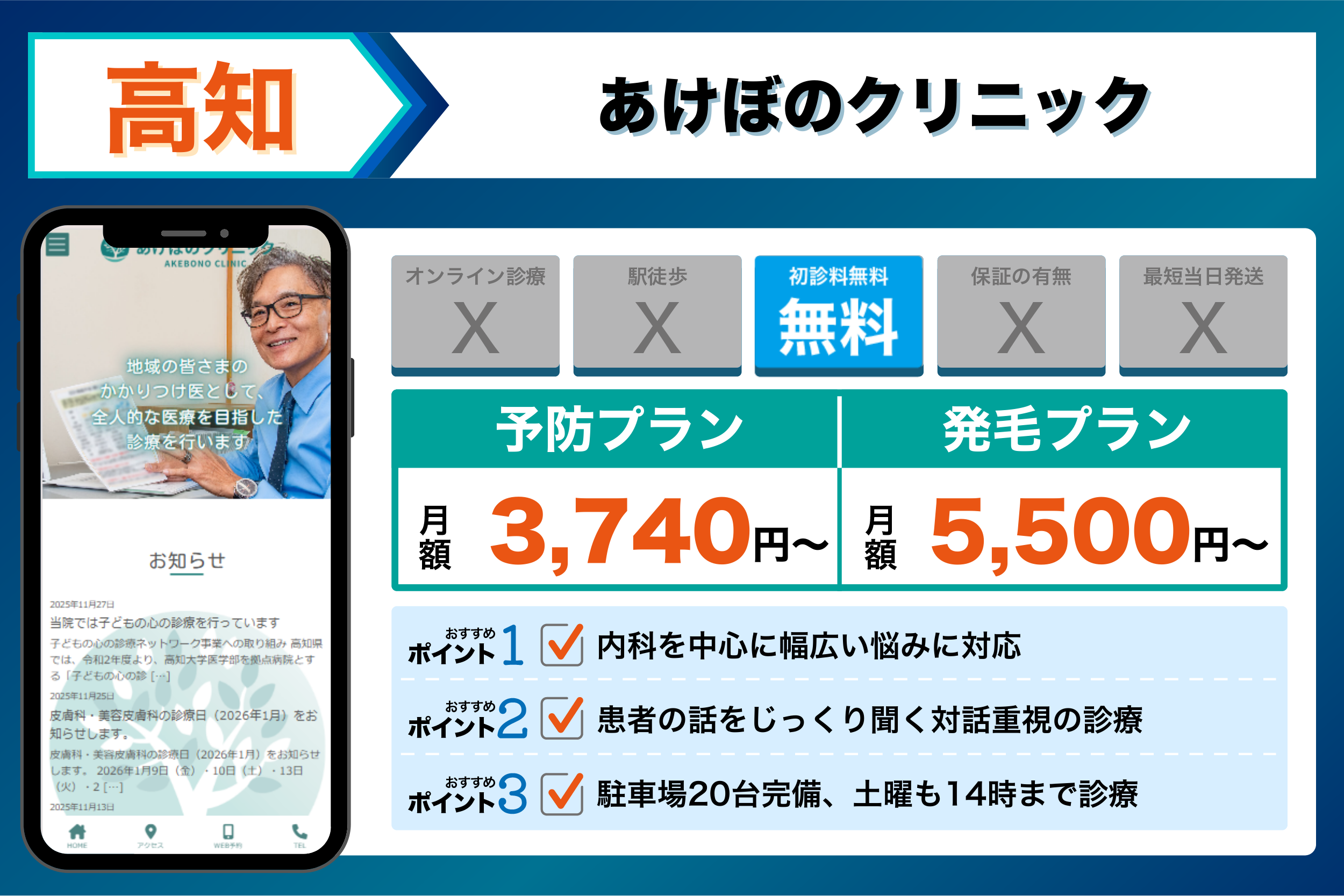 高知主要部から通やすいAGA治療おすすめクリニックを紹介