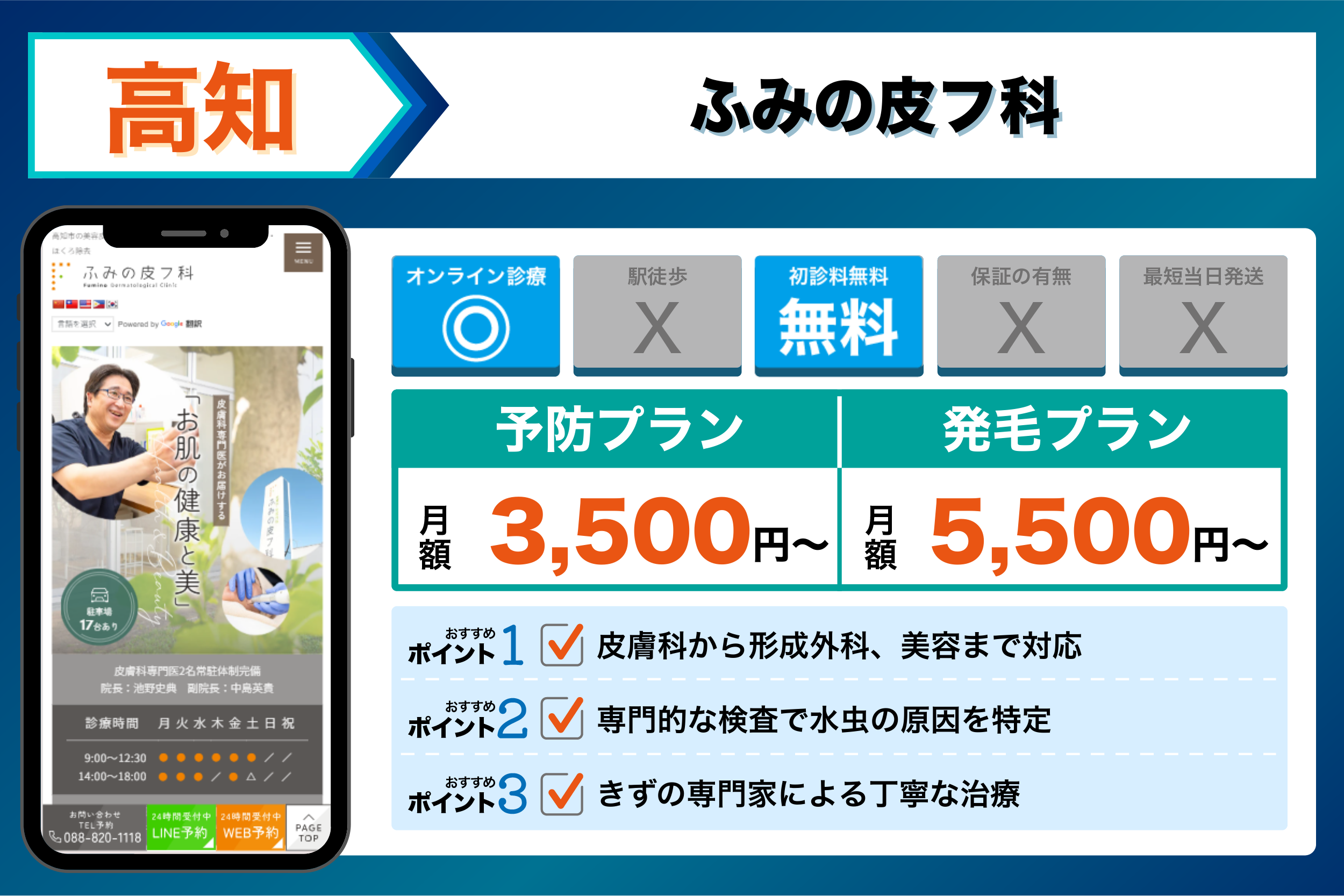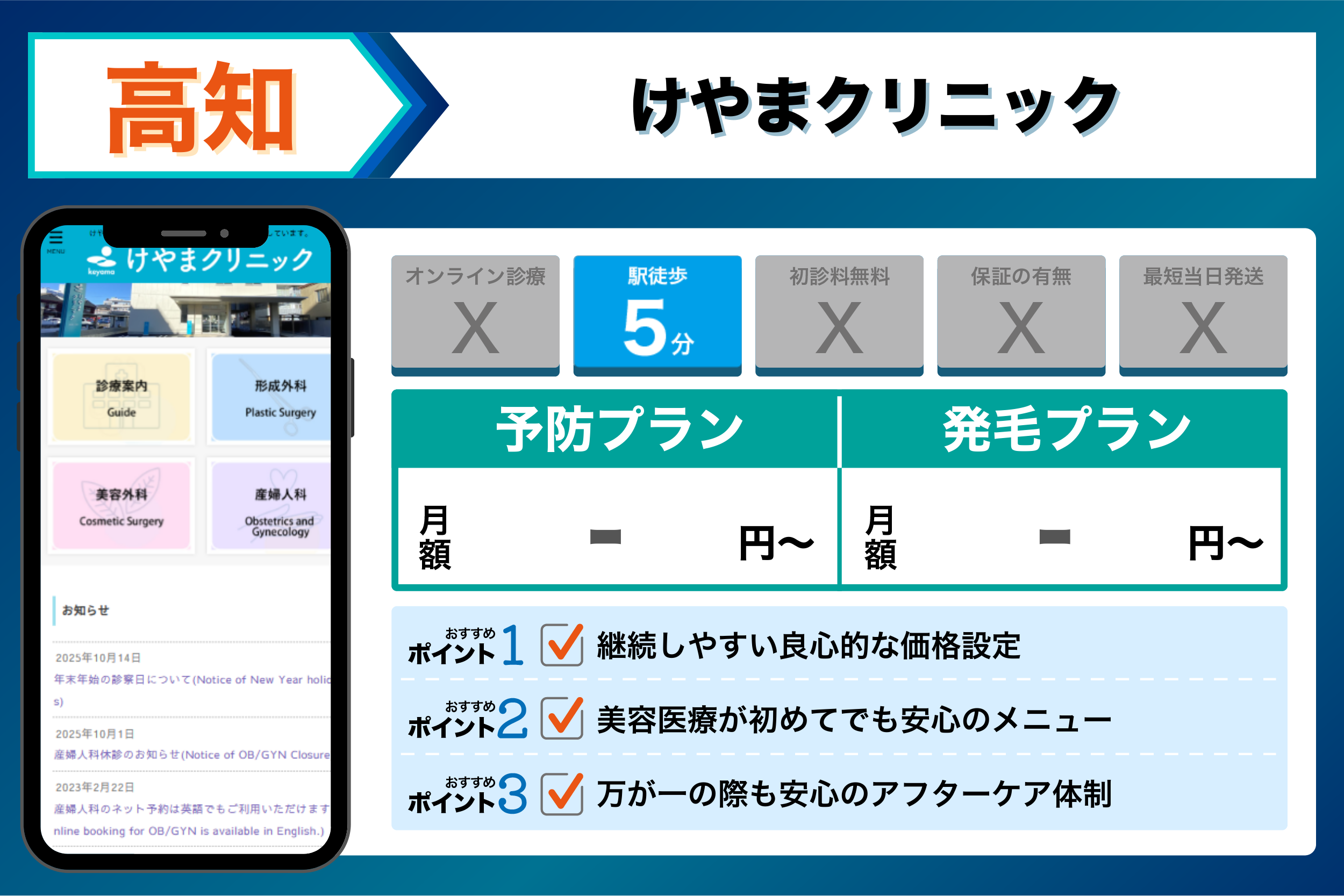 これらを踏まえて、4つの観点から選ぶ高知でおすすめのクリニックは以下のようになりました。
