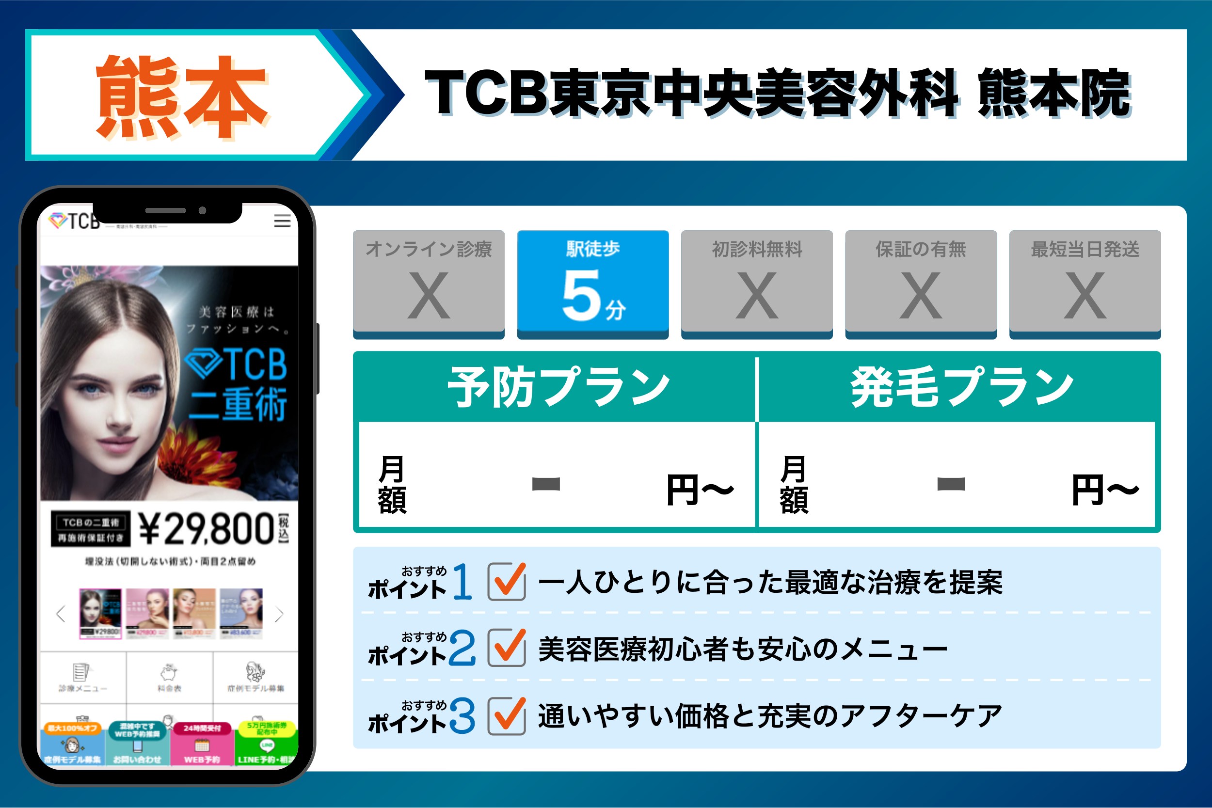 TCB東京中央美容外科 熊本院 | 一人ひとりに合った最適な治療を提案 | 公式サイトに記載なし |