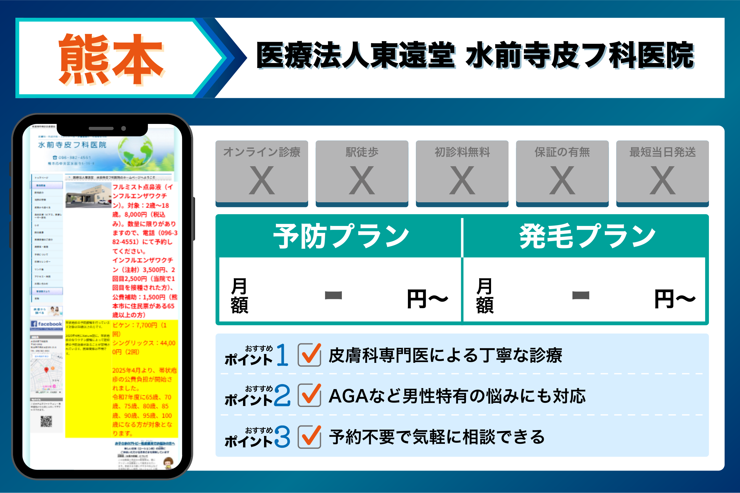 医療法人東遠堂 水前寺皮フ科医院 | 皮膚科専門医による丁寧な診療 | 公式サイトに記載なし |