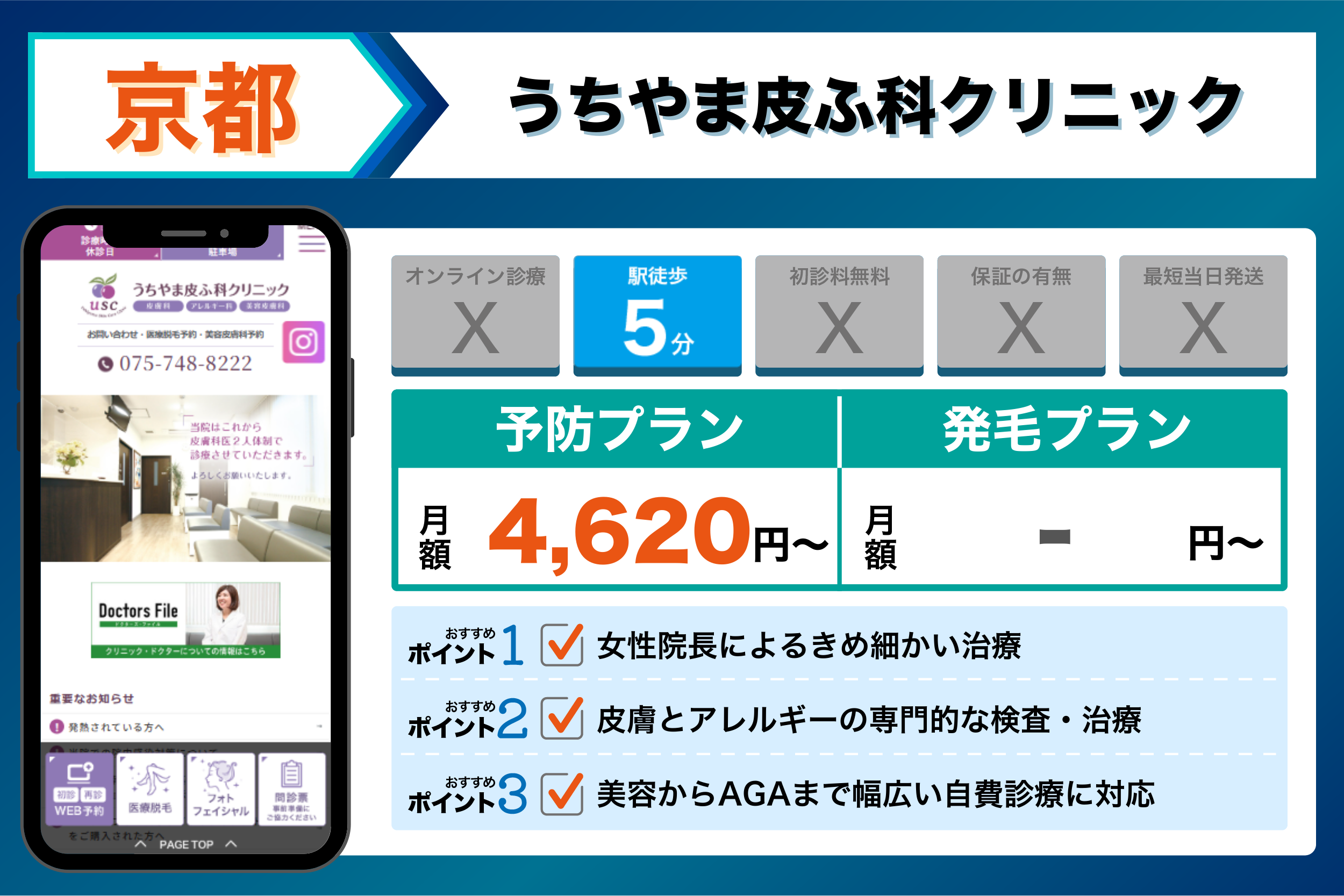 - 実際に通う利便性重視 → 京都河原町駅徒歩圏内のあおばクリニック 京都四条河原町院や、烏丸駅から近い京都烏丸駅前皮フ科スキンクリニック・クリニーク京都烏丸など、現地の駅近クリニック