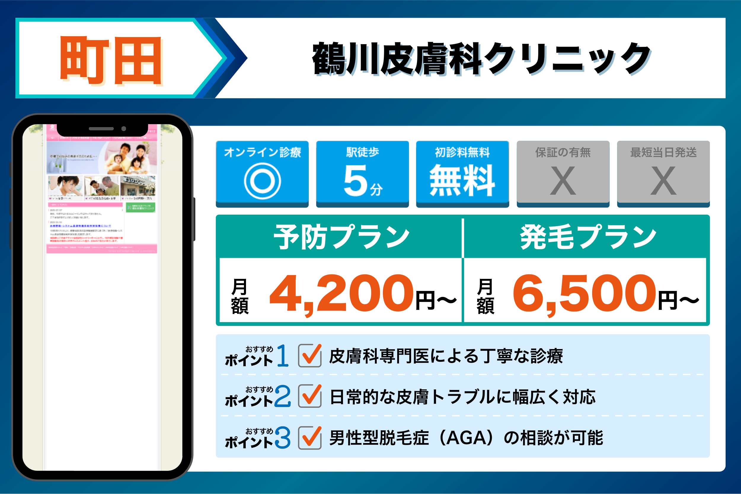 鶴川皮膚科クリニック | 皮膚科専門医による丁寧な診療 | 【発毛】:ミノキシジル内服:6,500円(税込)から| |