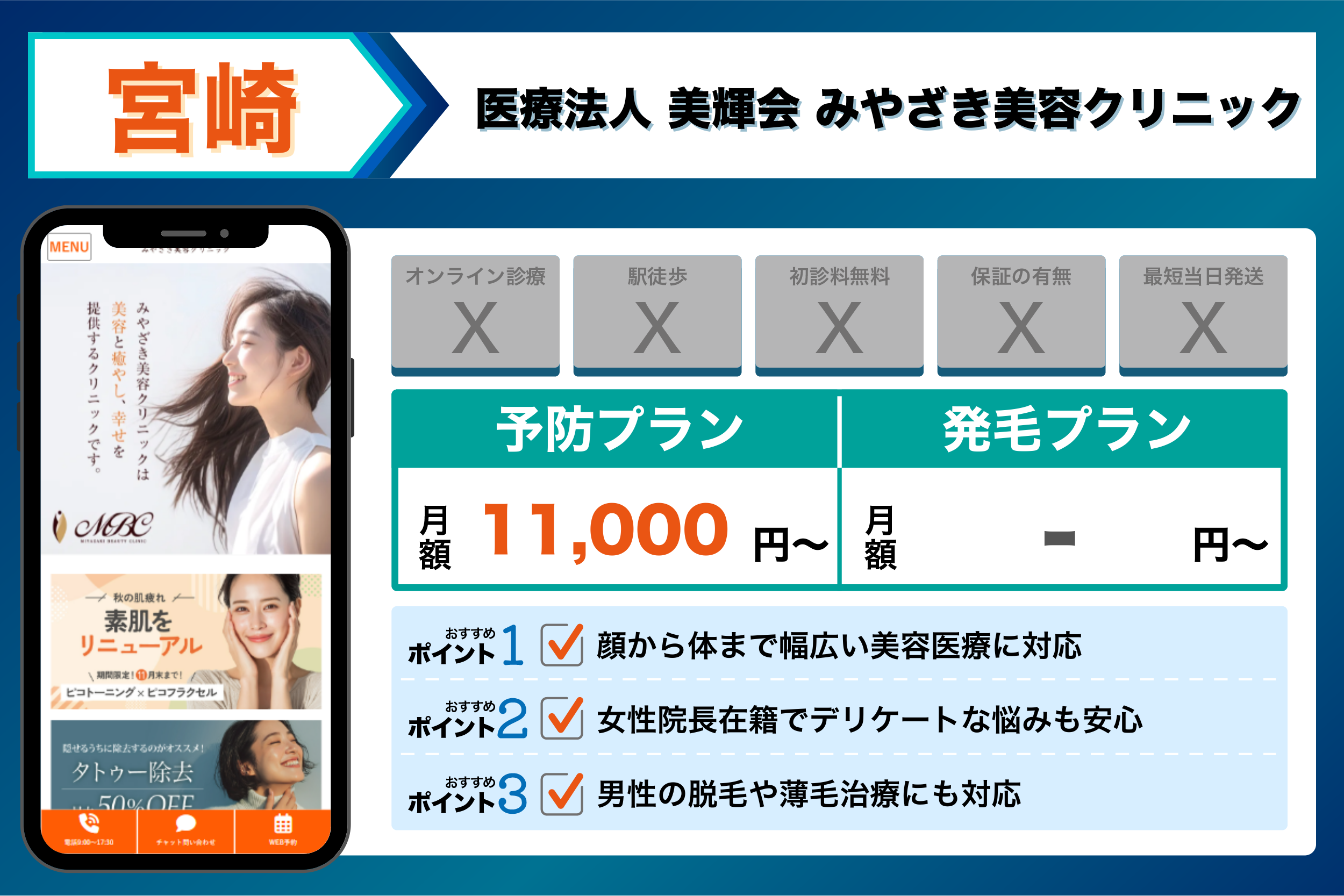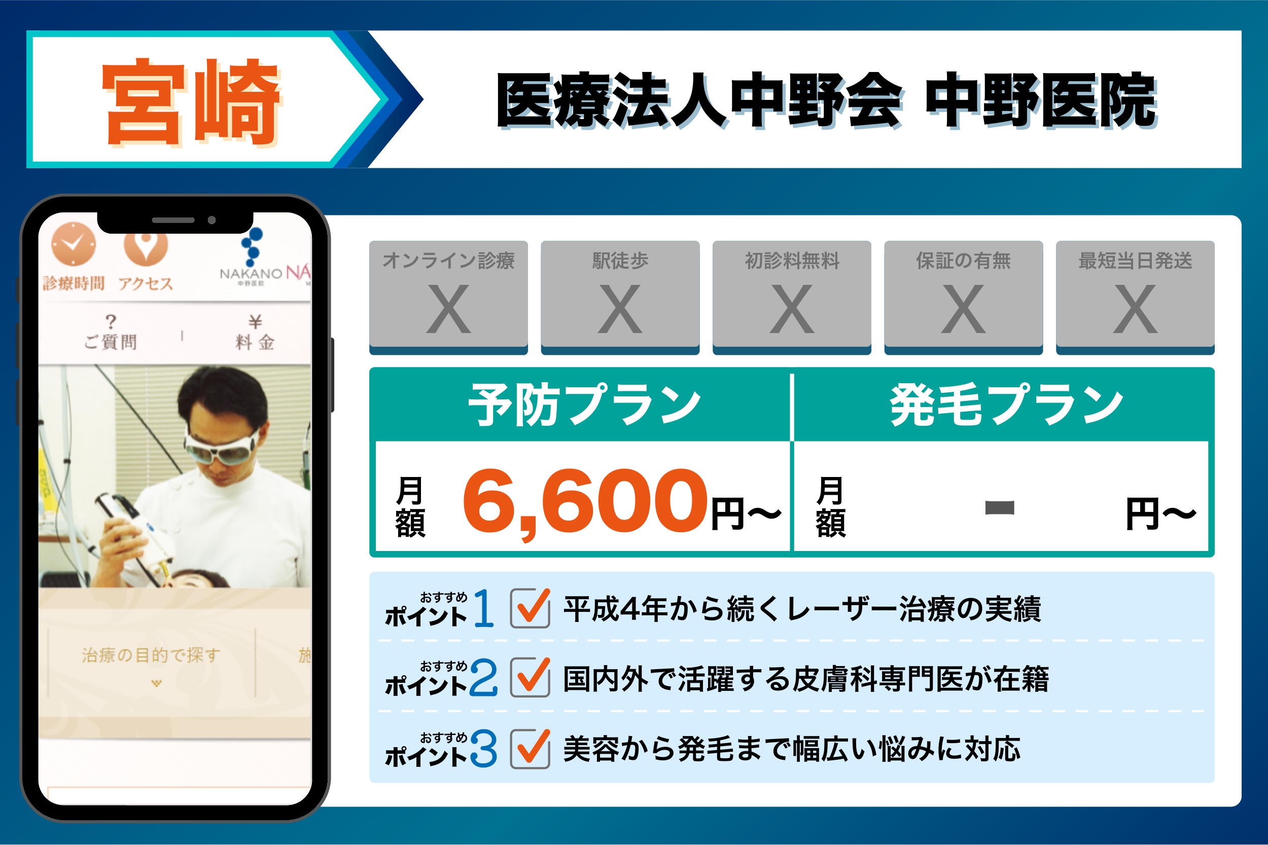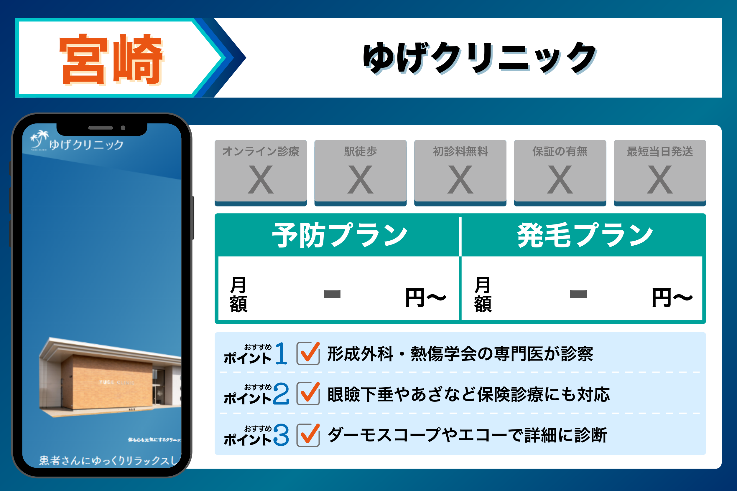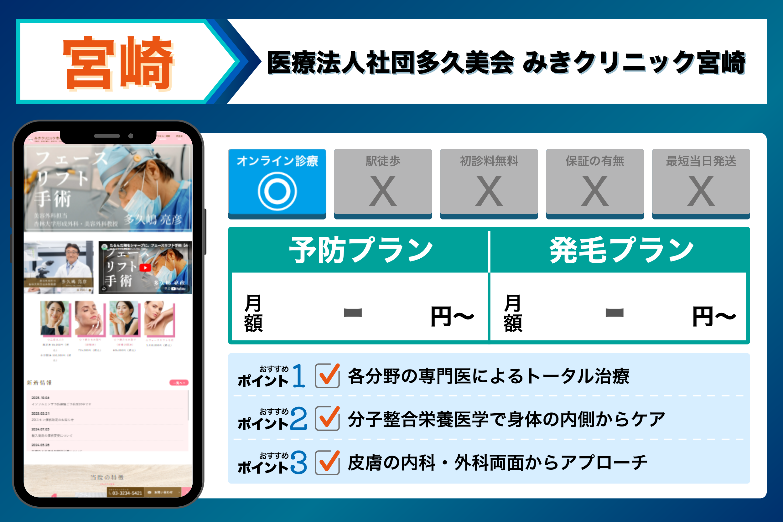 これらを踏まえて、4つの観点から選ぶ宮崎でおすすめのクリニックは以下のようになりました。