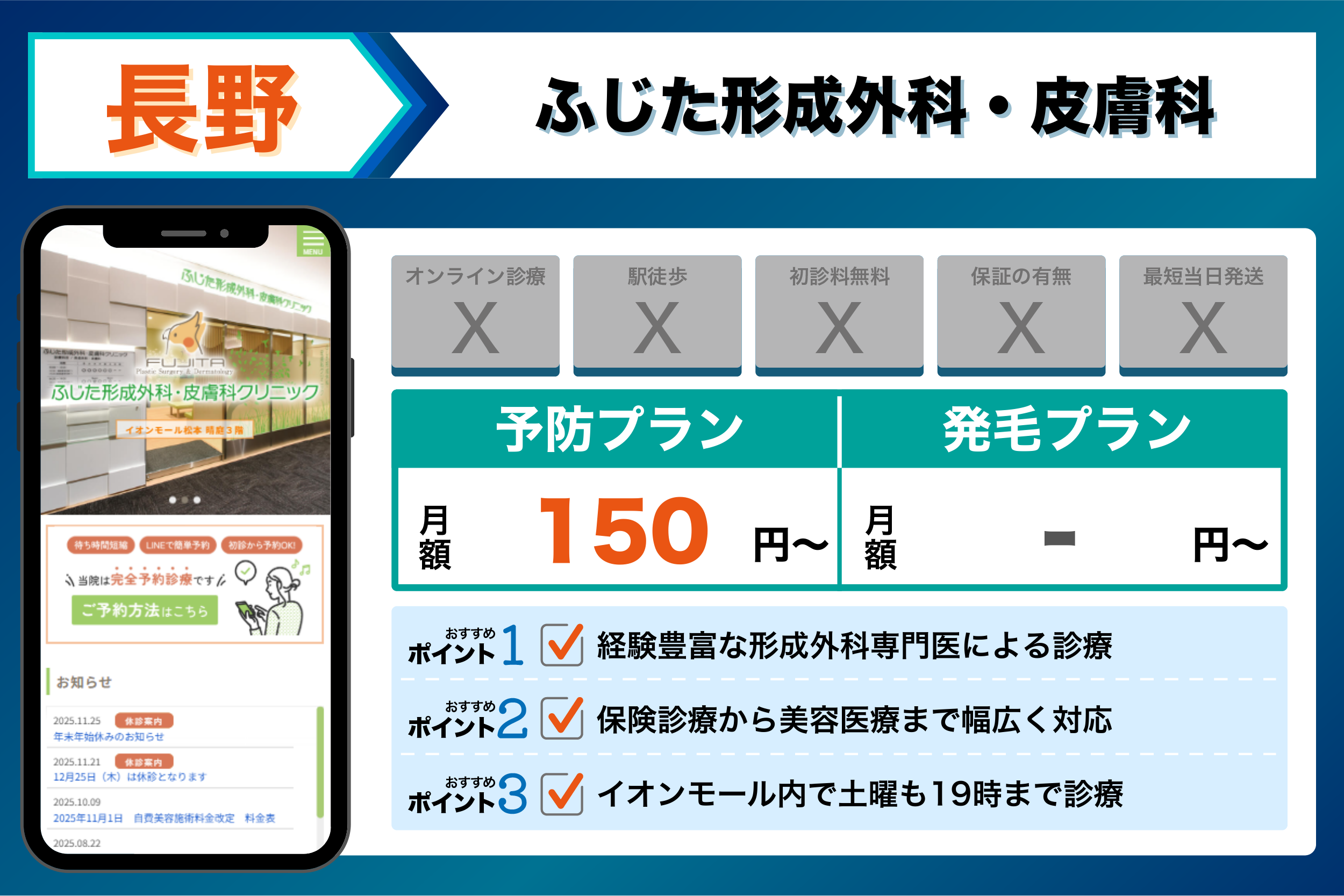 - 実際に通う利便性重視 → 長野駅徒歩圏内の城本クリニック 長野院や、松本駅から近い東京青山クリニック 長野松本院など、現地の駅近クリニック