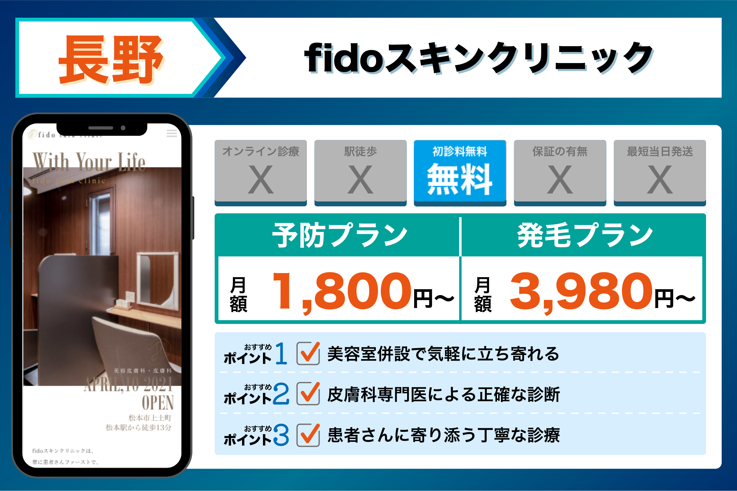 fidoスキンクリニック | 美容室併設で気軽に立ち寄れる | 【発毛】:ミノキシジル内服薬2.5mg:3,980円(税込)から |