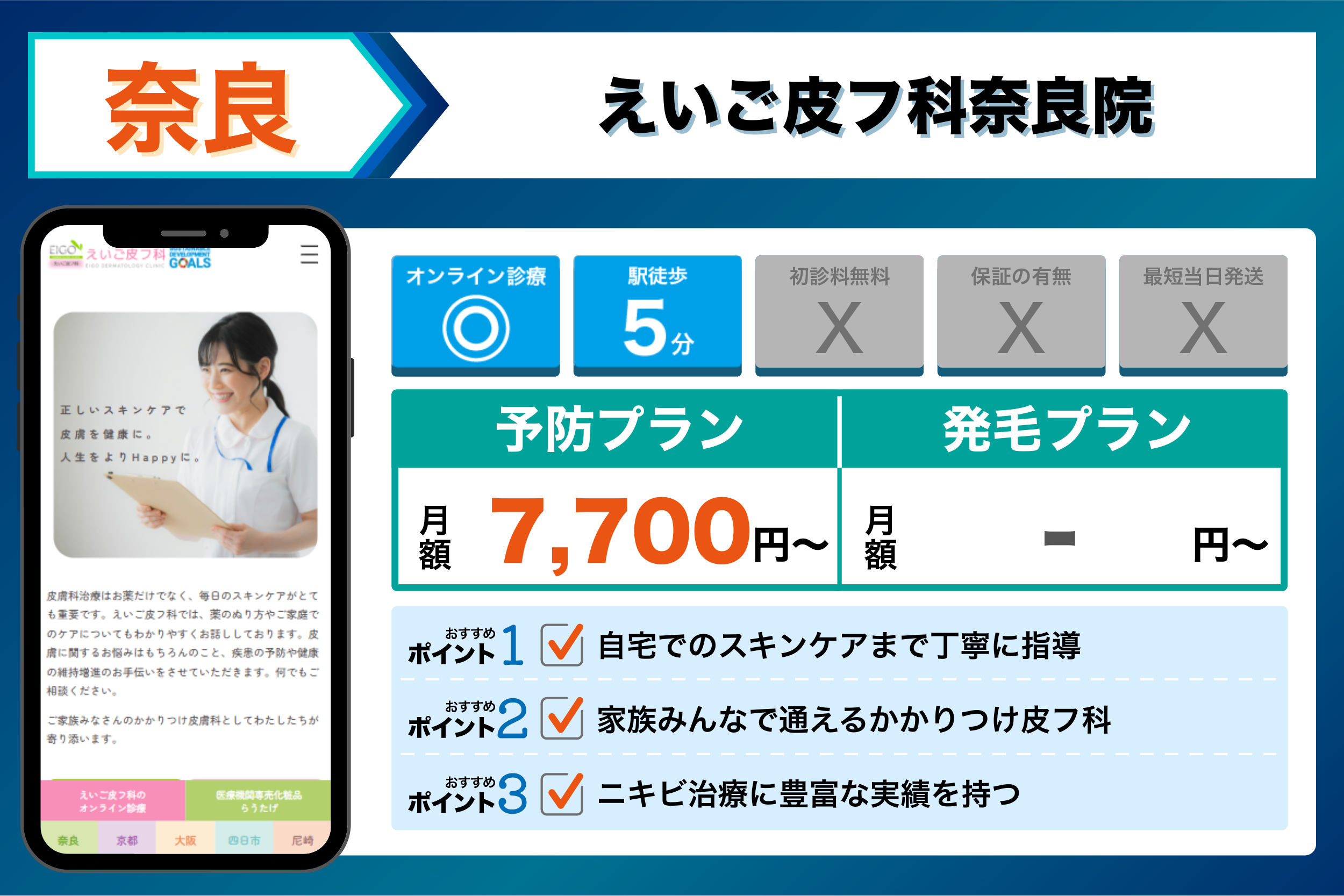 えいご皮フ科奈良院 | 自宅でのスキンケアまで丁寧に指導 | 【予防】:フィナステリド:7,700円 (税込)から |