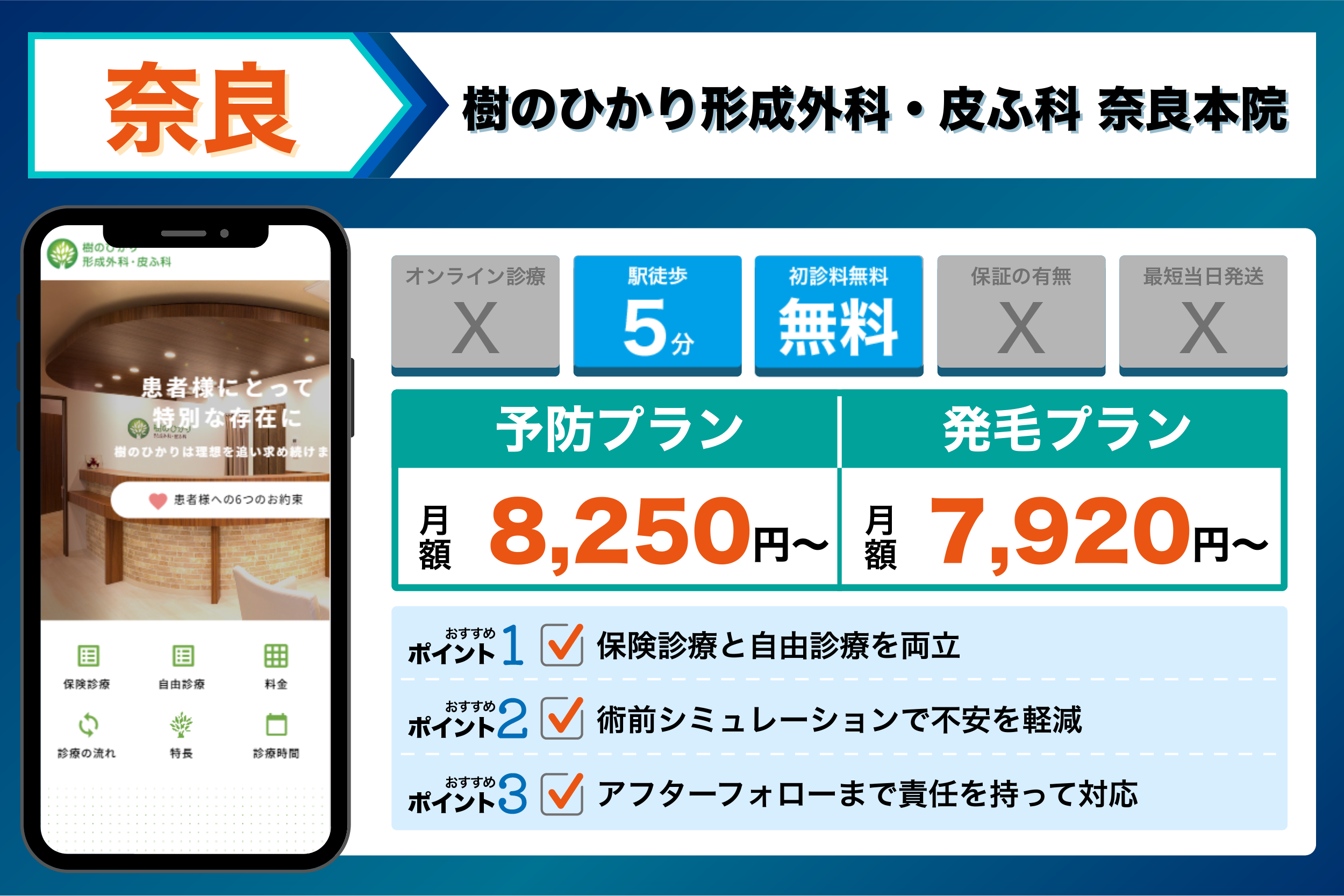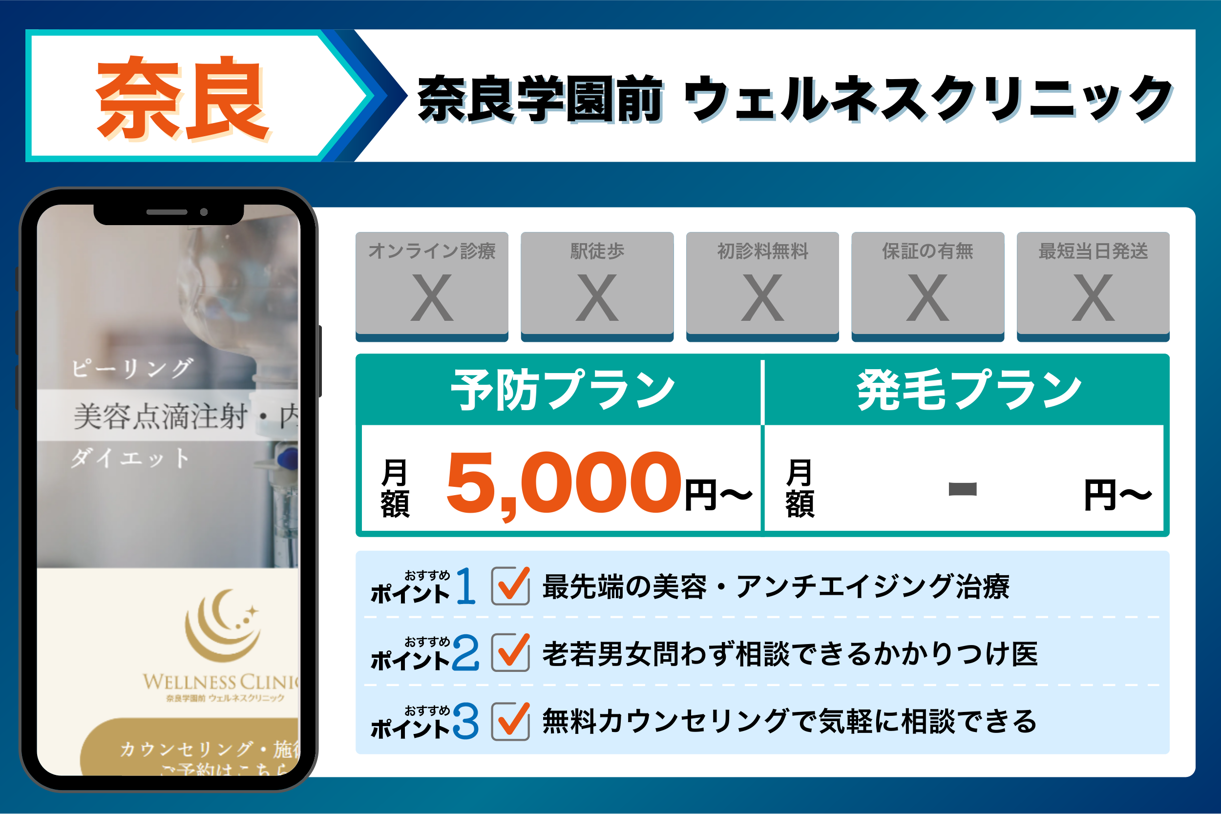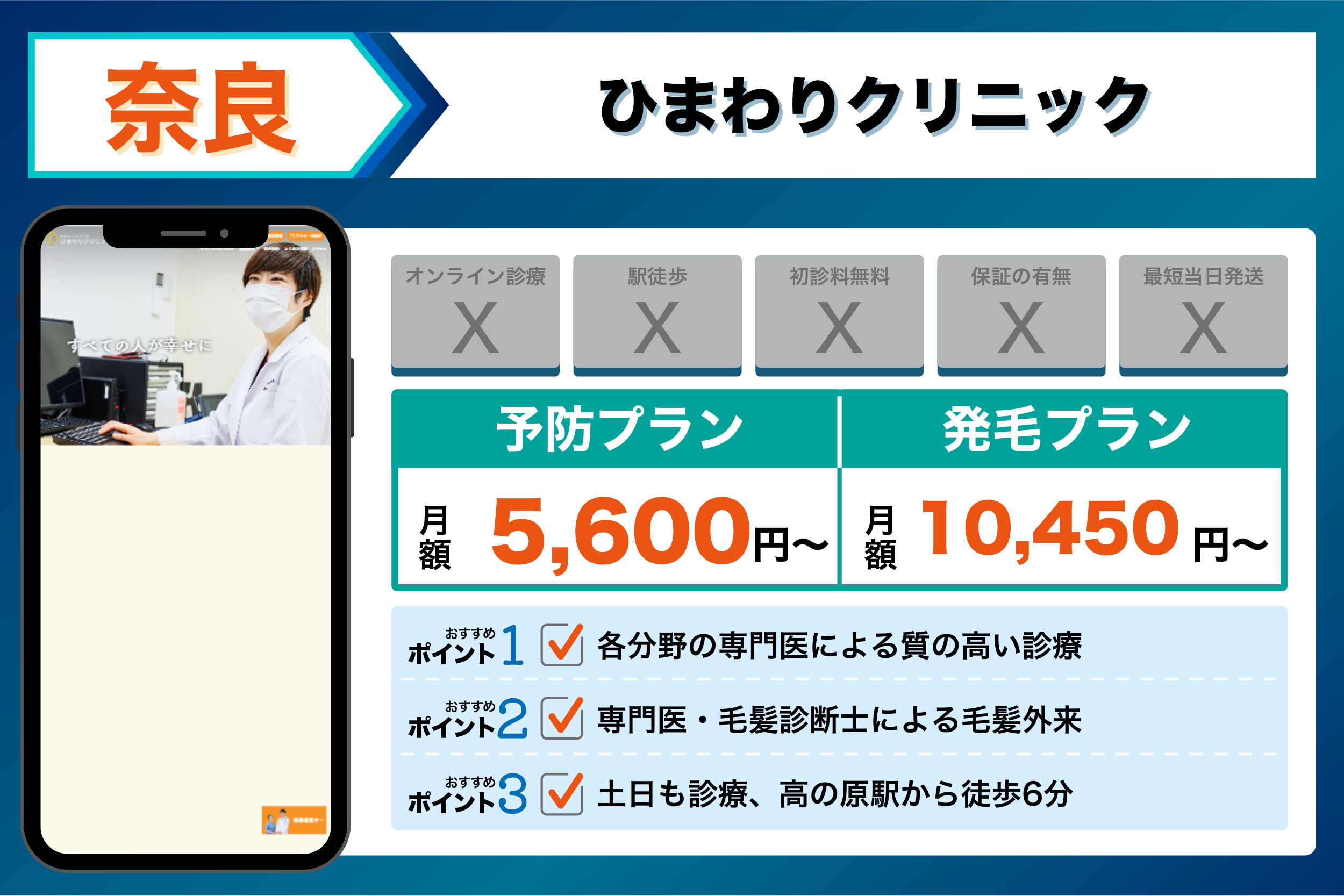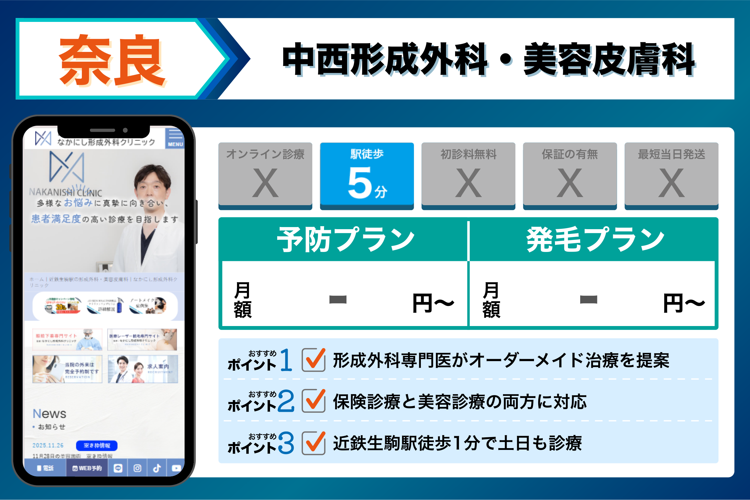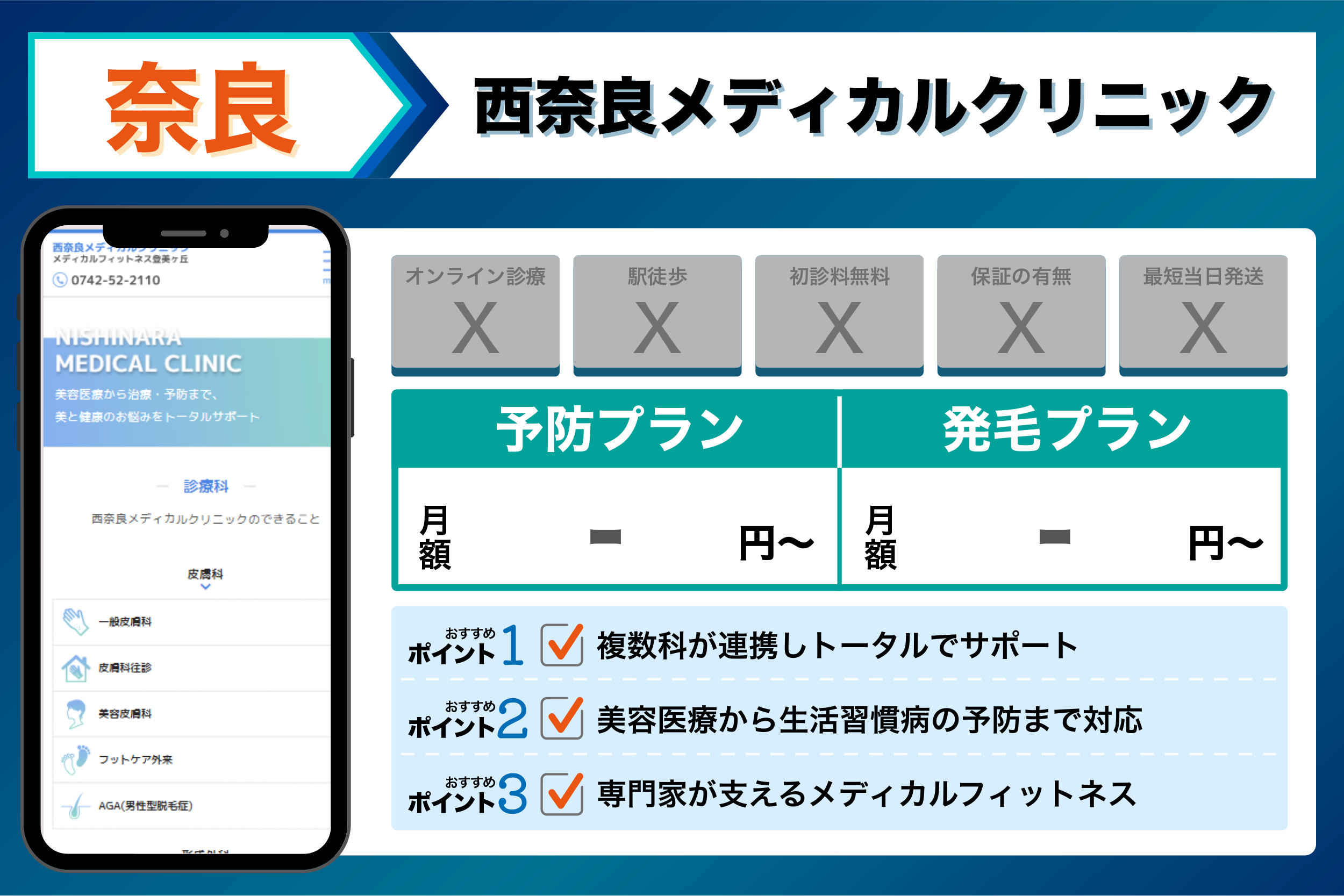 当編集部が奈良の主要クリニックを調査した結果、重視するポイントごとに以下のような傾向が見られました。