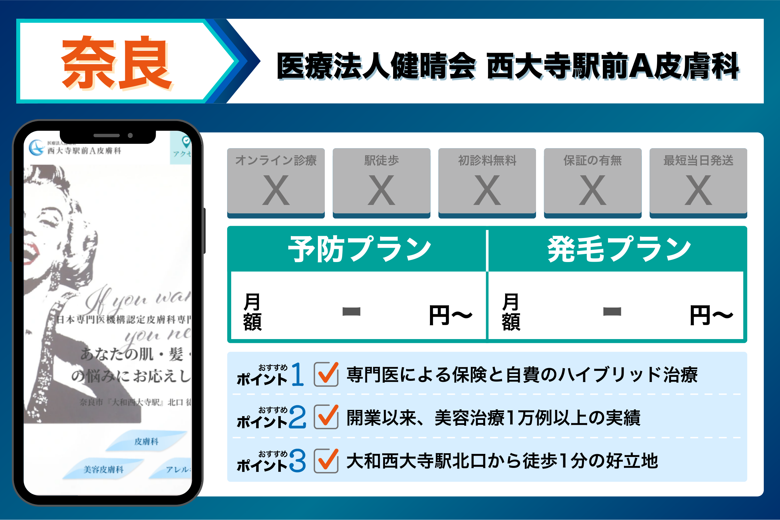 医療法人健晴会 西大寺駅前A皮膚科 | 専門医による保険と自費のハイブリッド治療 | 公式サイトに記載なし |