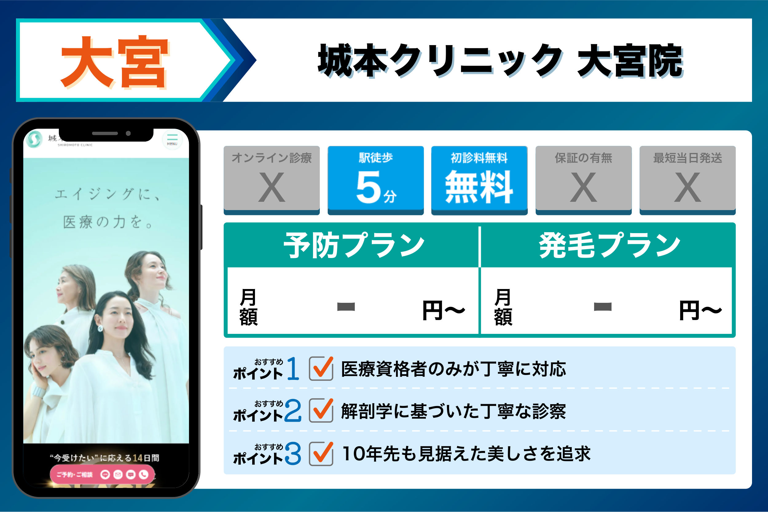 城本クリニック 大宮院 | 医療資格者のみが丁寧に対応 | 公式サイトに記載なし |