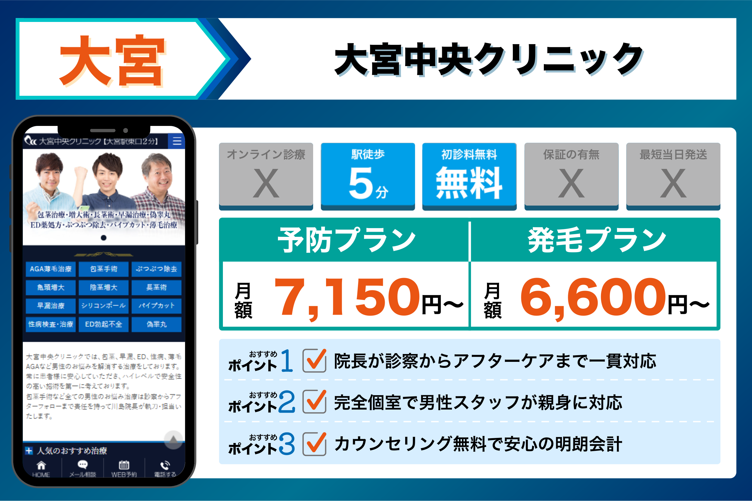 AGA治療を始める前に、必ずチェックしておきたい「安心のサポート体制」を3つのポイントに分けて解説します。