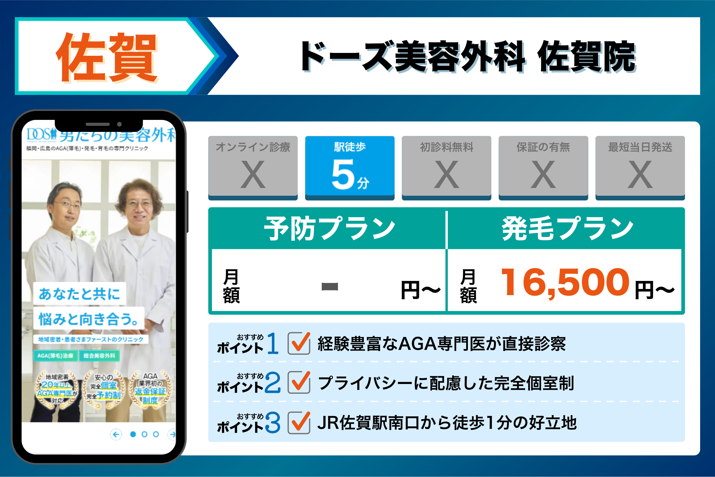 佐賀主要部から通やすいAGA治療おすすめクリニックを紹介