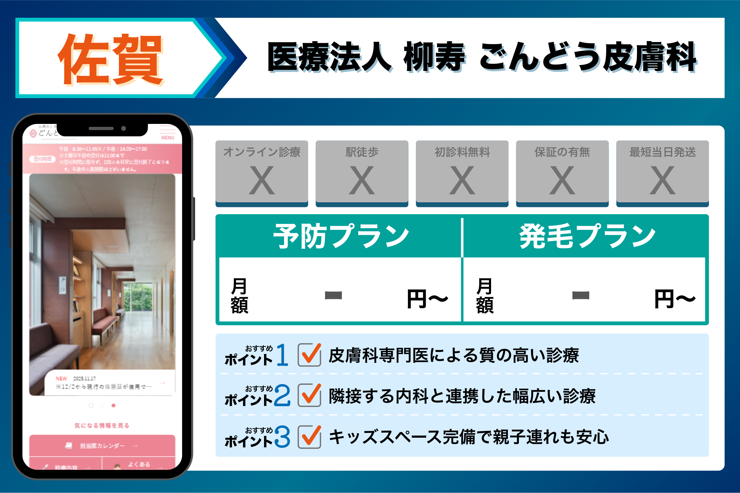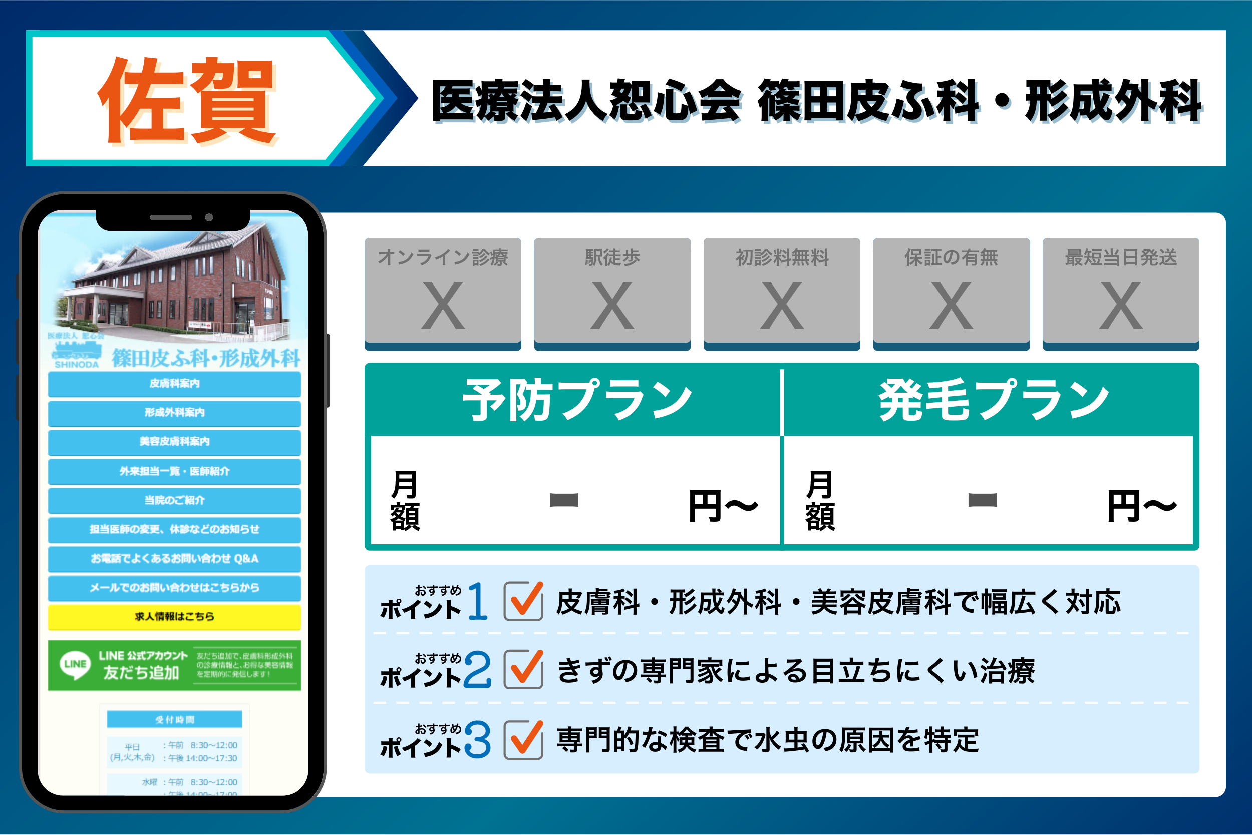 - 佐賀駅周辺や松原・白山エリアで働いているが、多忙でクリニックの診療時間に間に合わない・通う時間がないビジネスマン