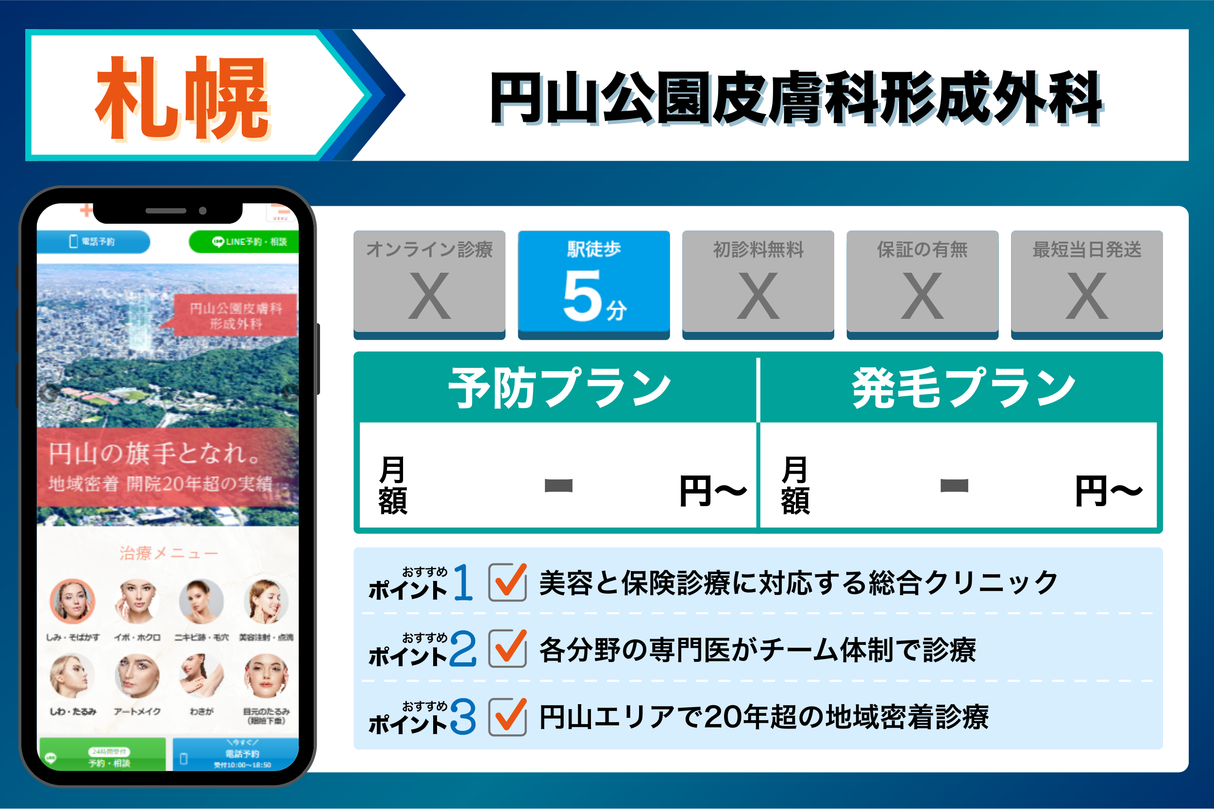 円山公園皮膚科形成外科 | 一般皮膚科から外科的治療まで幅広く対応 | 公式サイトに記載なし |