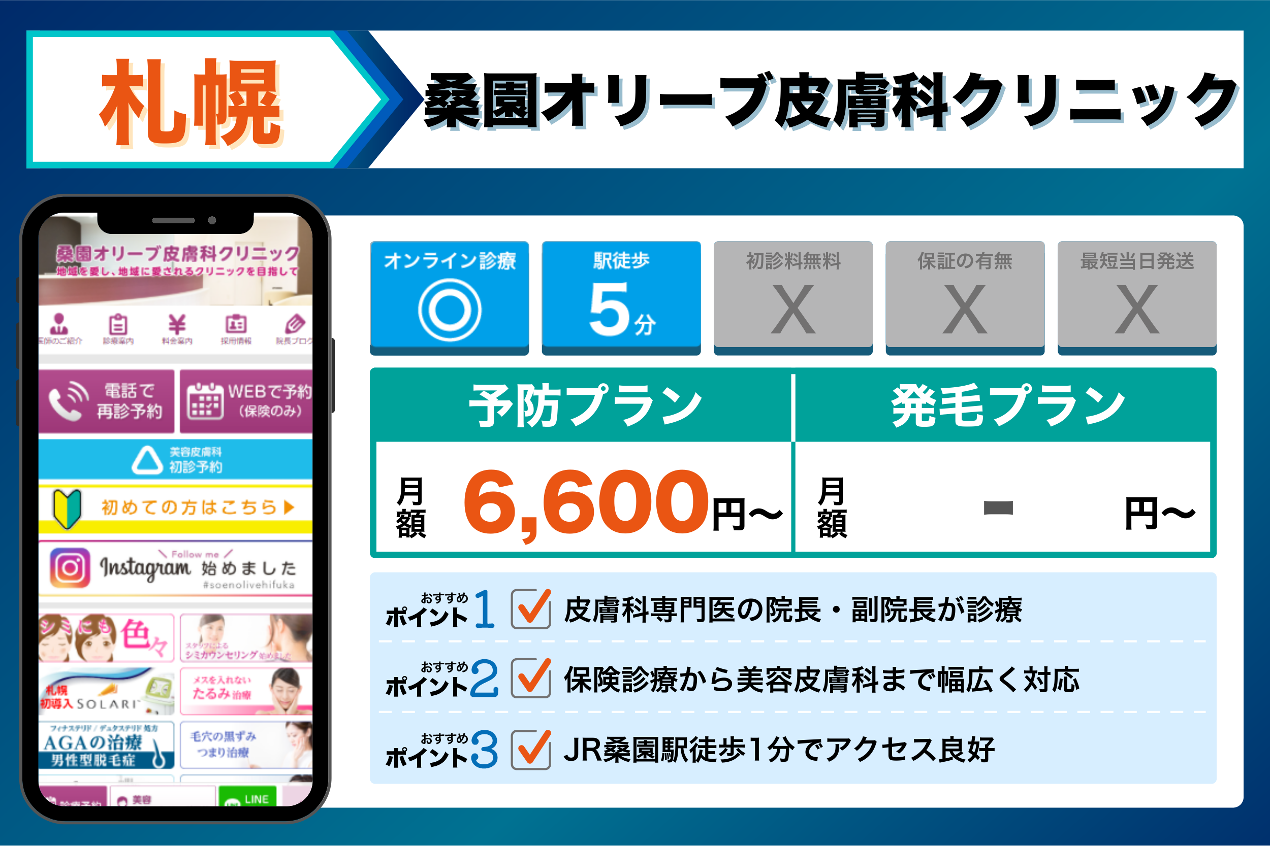桑園オリーブ皮膚科クリニック | 皮膚科専門医の院長・副院長が診療 | 【予防】:フィナステリド(ジェネリック)(1mg):6,600円から |