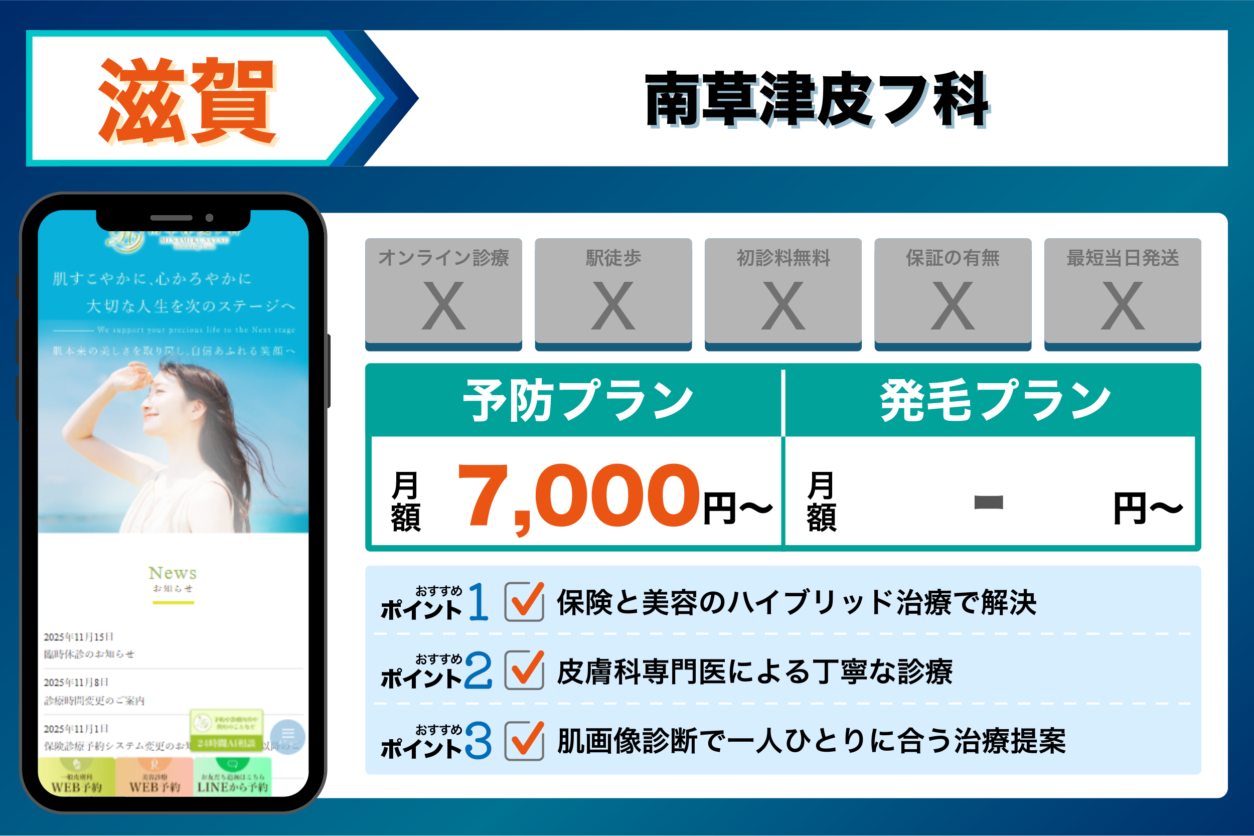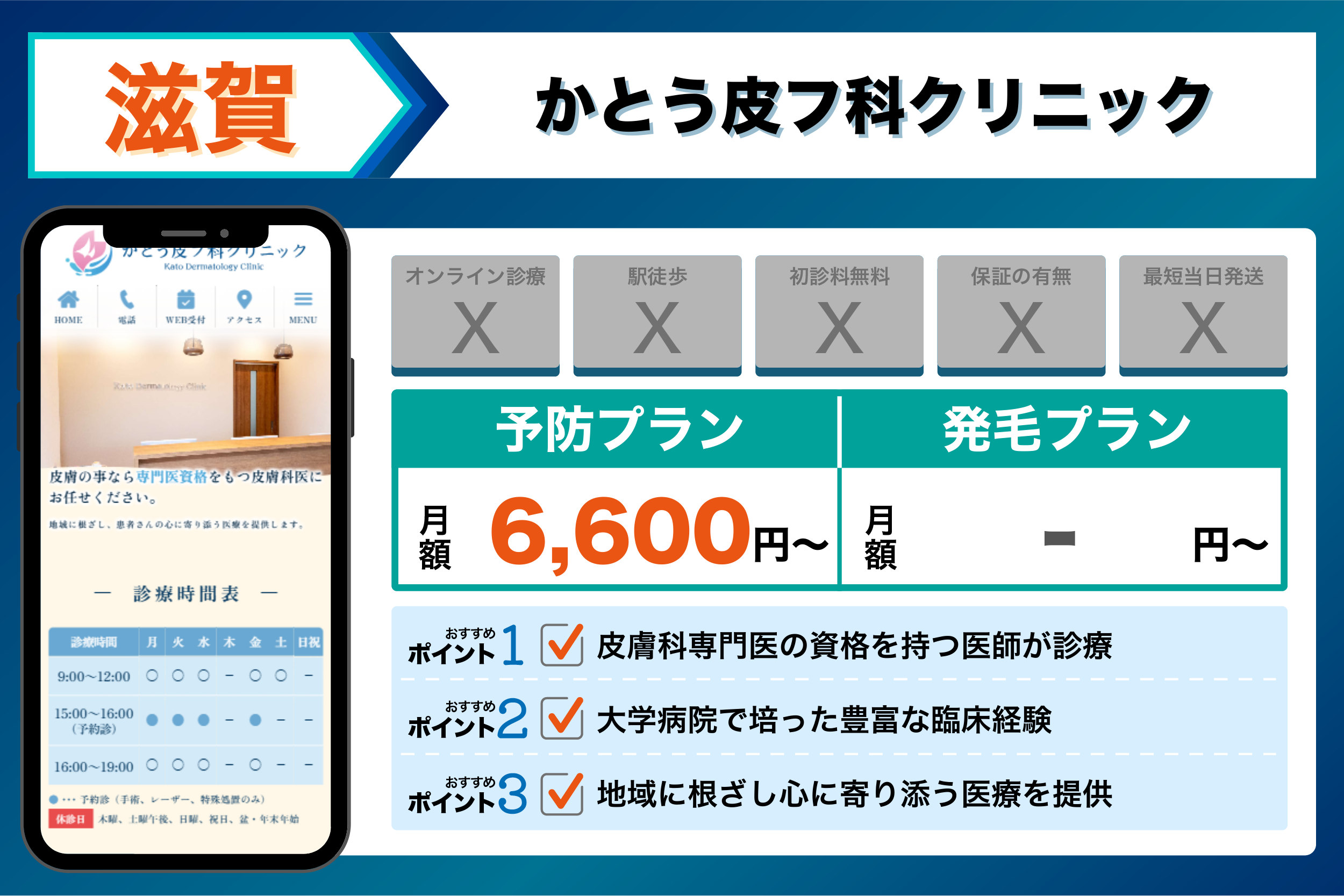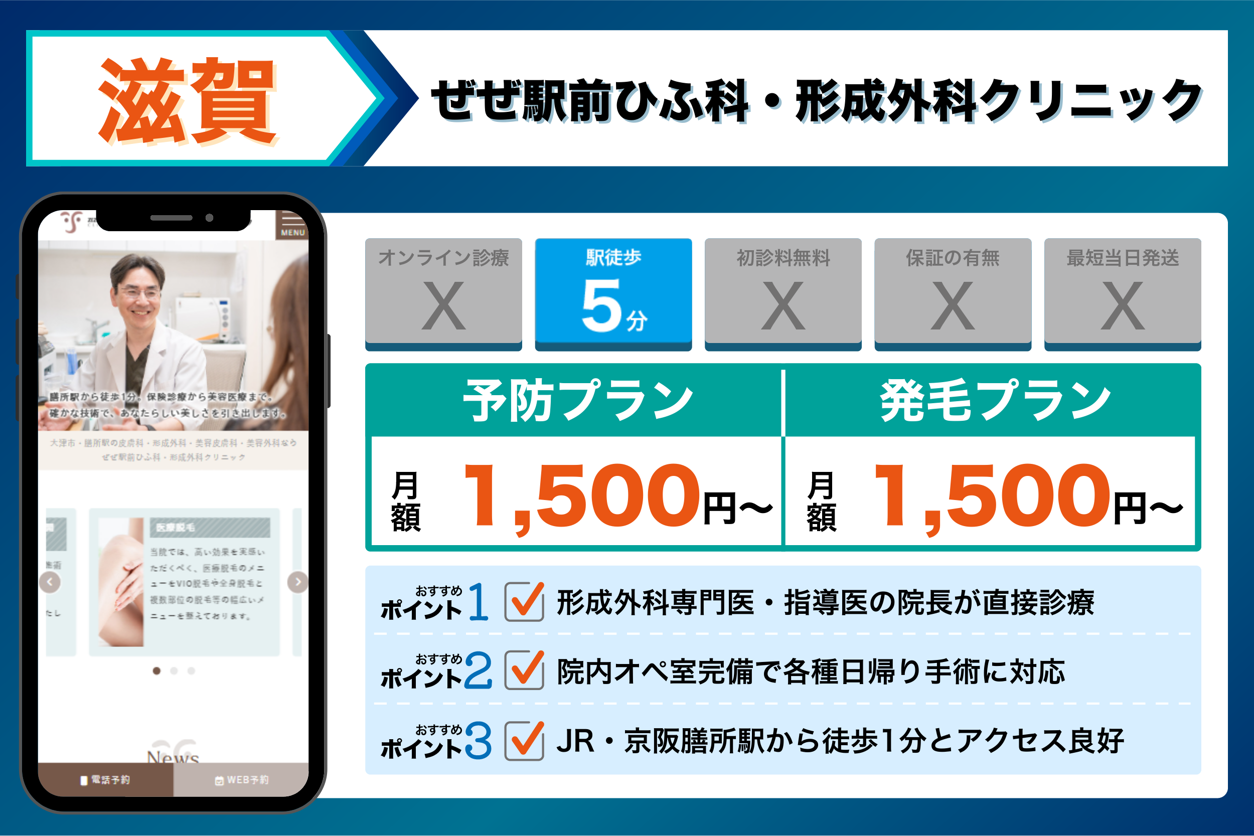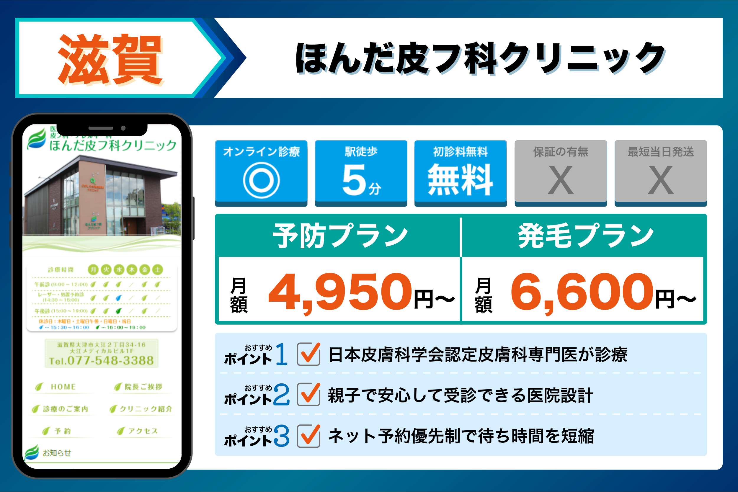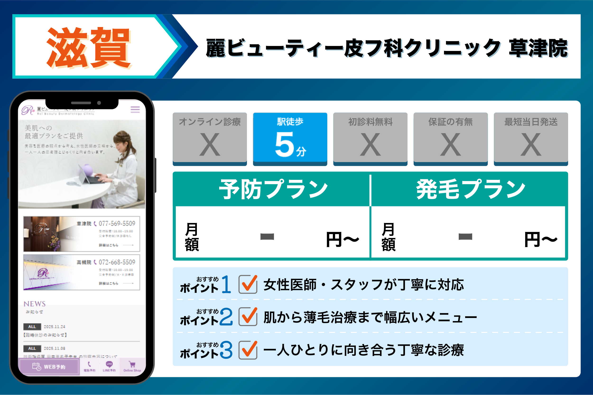 これらを踏まえて、4つの観点から選ぶ滋賀でおすすめのクリニックは以下のようになりました。
