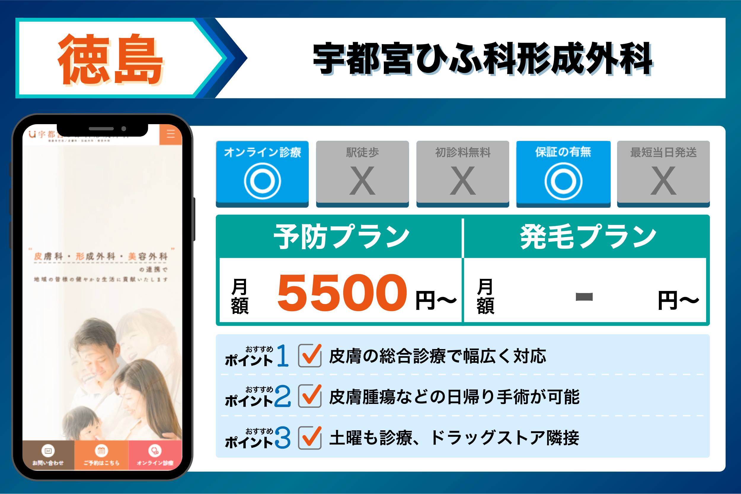 - 実際に通う利便性重視 → 徳島駅徒歩圏内のしらさぎ形成クリニックや、徳島駅から近い西新町二丁目クリニックなど、現地の駅近クリニック