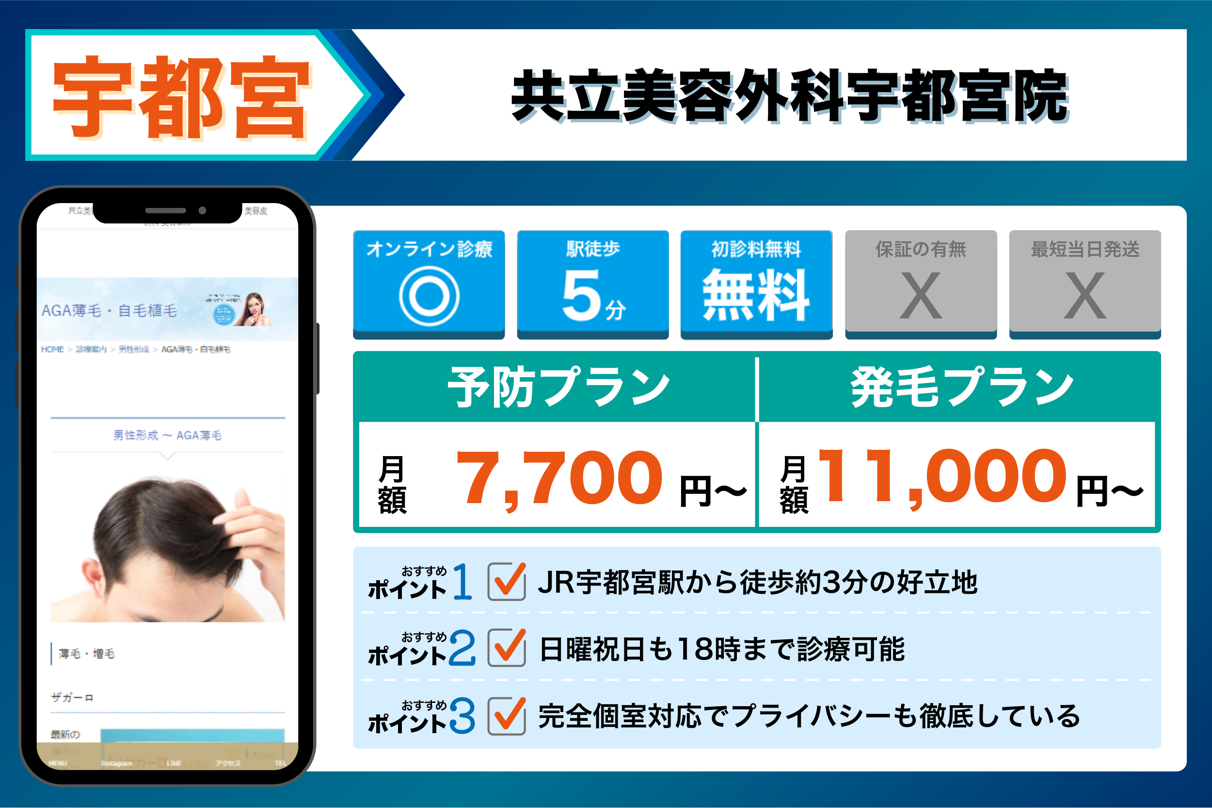 宇都宮主要部から通やすいAGA治療おすすめクリニックを紹介