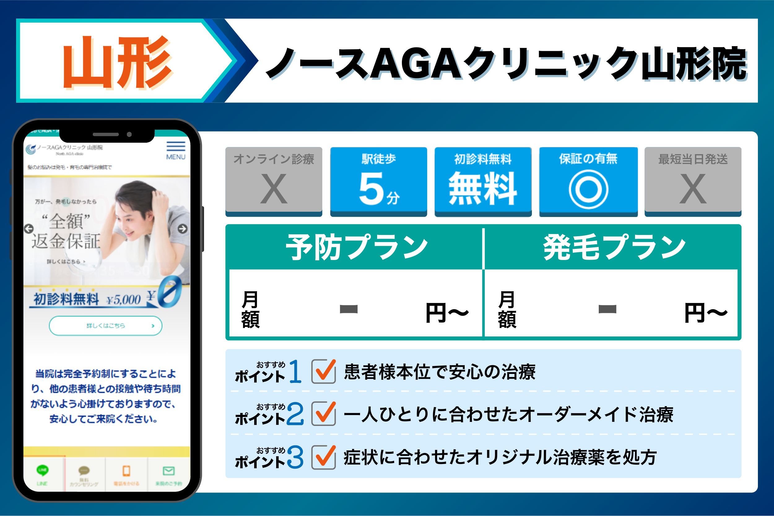 ノースAGAクリニック山形院 | 患者様本位で安心の治療 | 公式サイトに記載なし |
