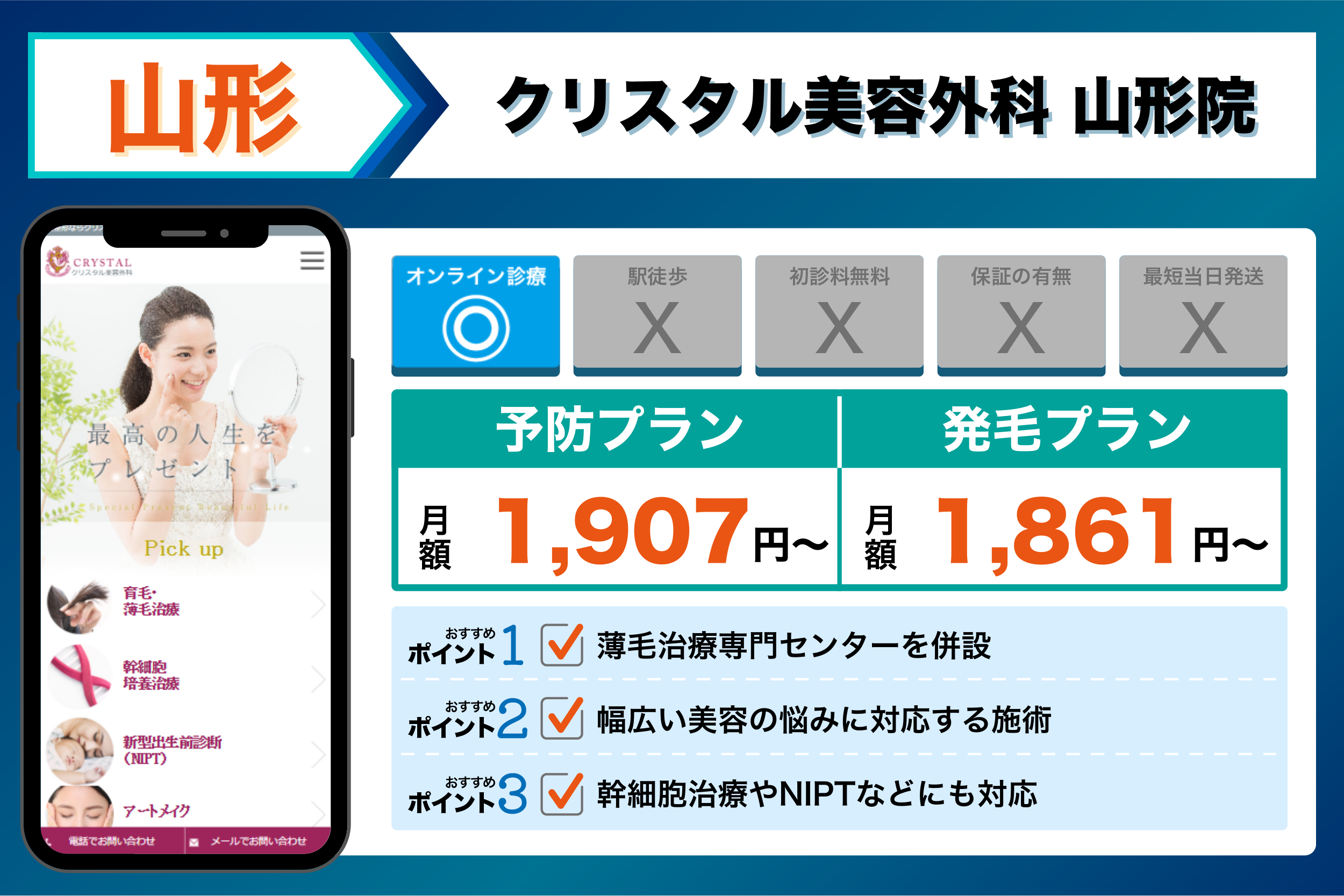クリスタル美容外科 山形院 | 薄毛治療専門センターを併設 | 【予防】:内服薬(フィナステリド):1万円から |