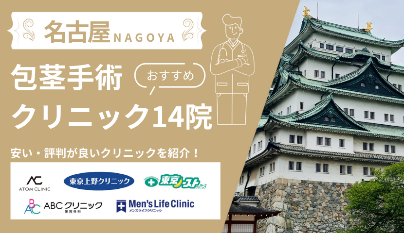 名古屋で包茎手術がおすすめのクリニックを14院を比較しました。費用が比較的安い・評判や口コミが良い医院を紹介しているだけでなく、包茎に関する基礎知識もまとめているので、包茎手術を検討している方で、以下のようなお悩みをお持ちの方は必見です。