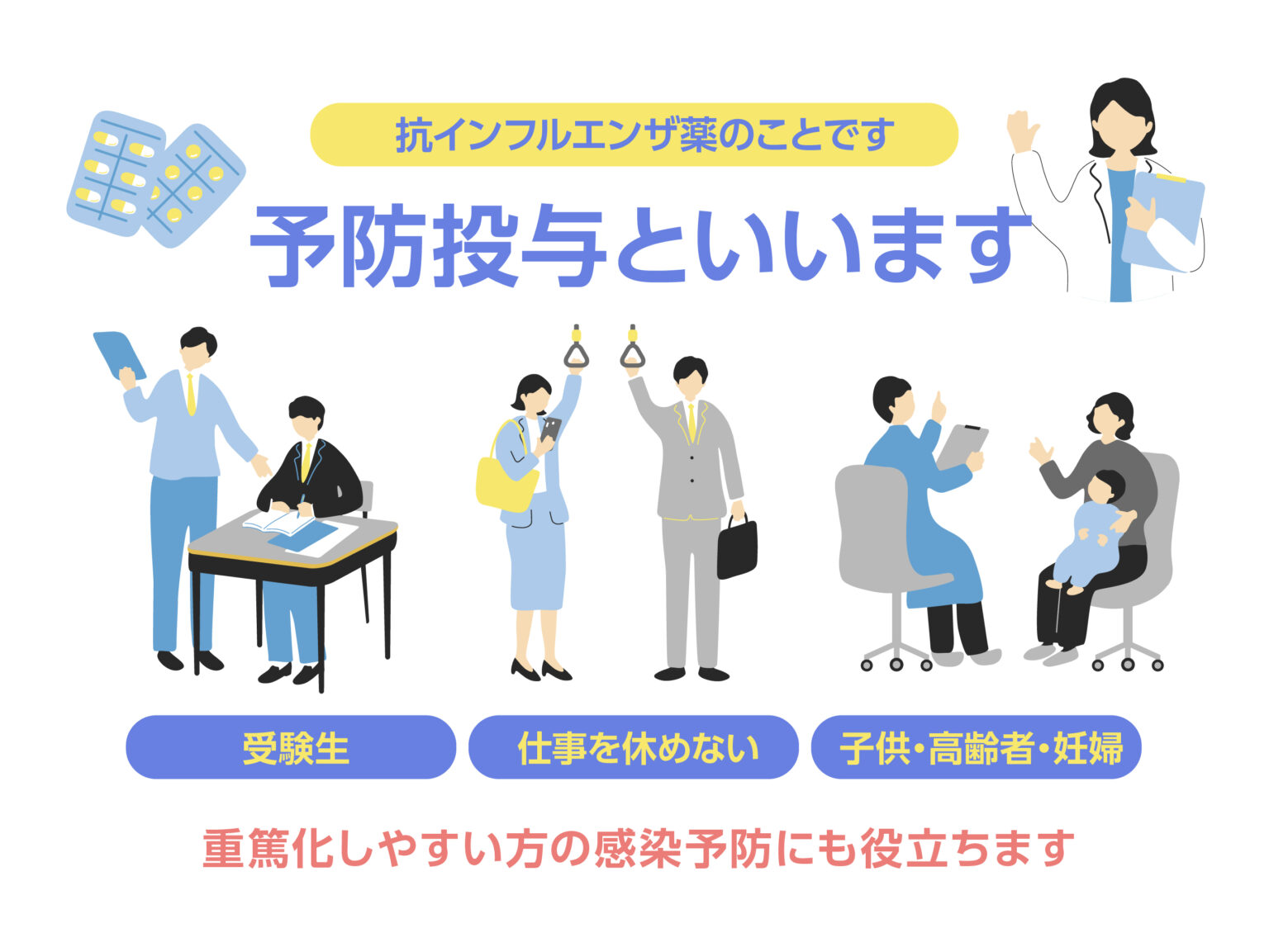 参考:横浜弘明寺呼吸器内科・内科クリニック健康情報局「抗インフルエンザ薬の予防投与の方法と効果、対象者」